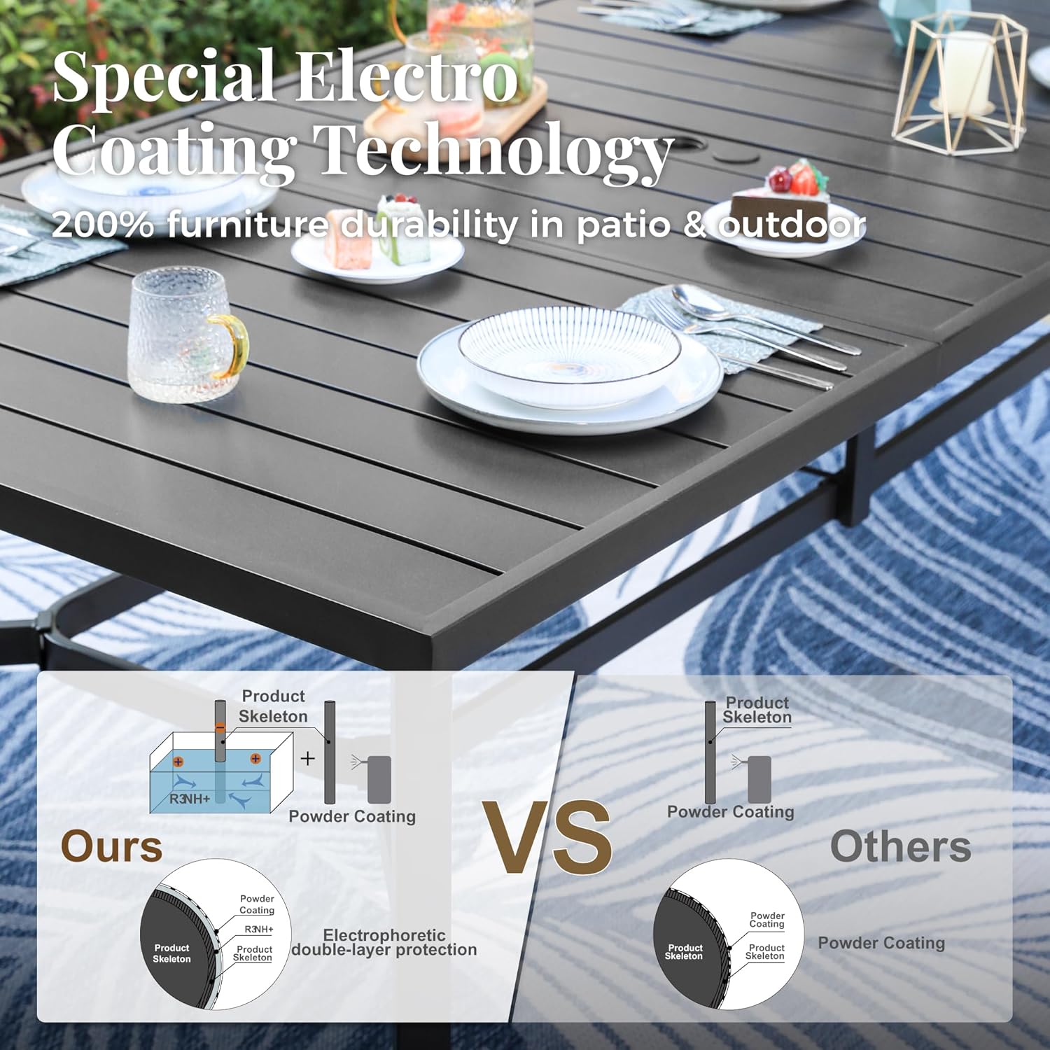 - Superior Material: Solid patio dining table with powder coating against rust and paint off, specifically for outdoor use. This metal dinning table is strong enough to withstand the rain, sun, and wind