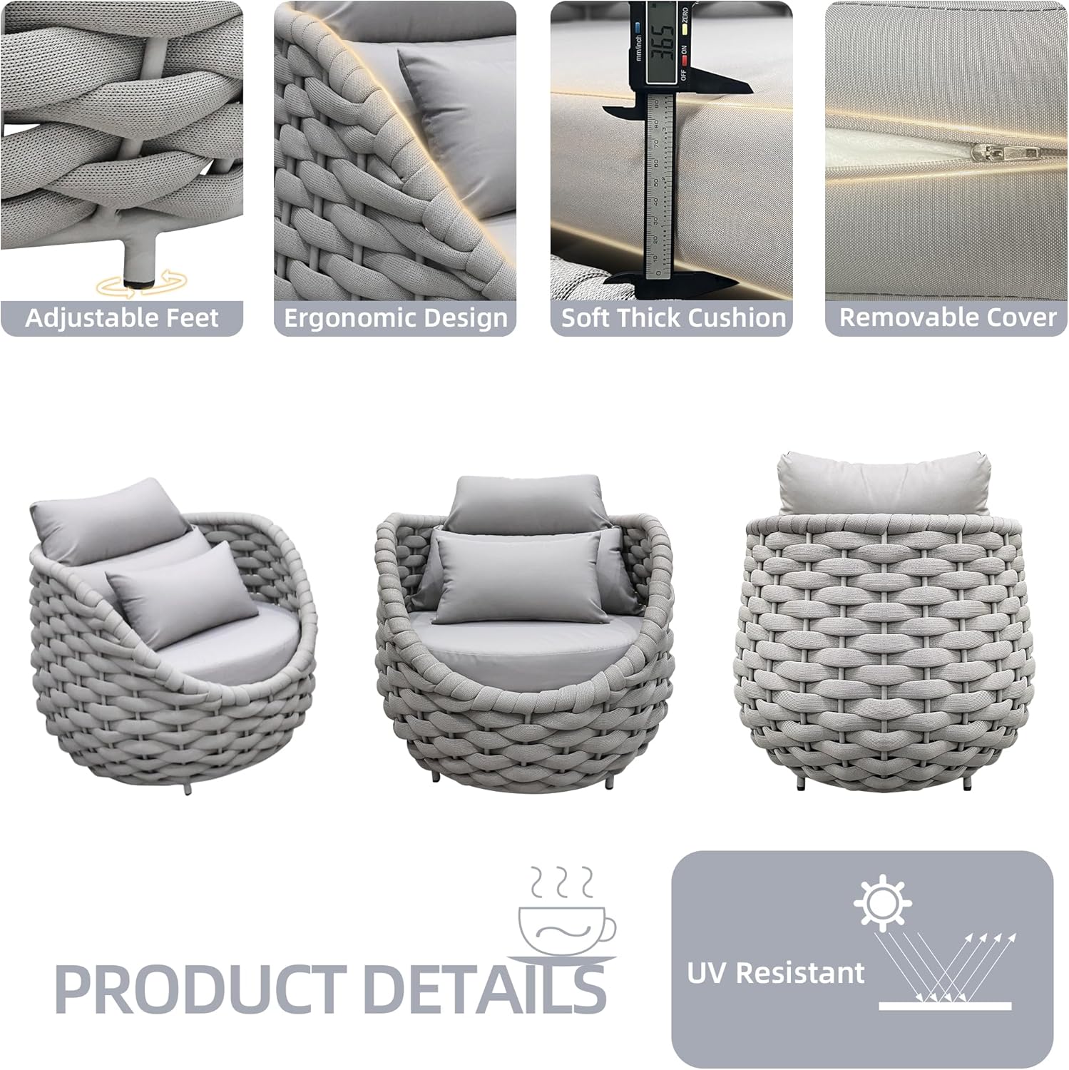 - NO required assembly & easy to clean:Our outdoor couch NO required assembly, just take them out and use. TWT patio chairsโ seat are easy to clean and polyester rope relatively soft. No need to take more extra special care to maintain patio couch