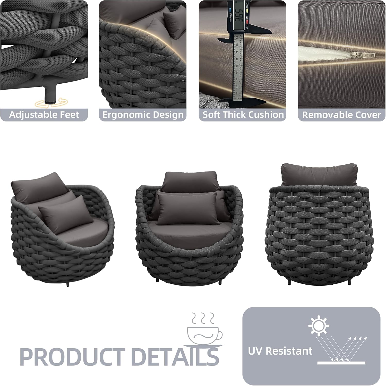 TWT Patio Sofa All-Weather Textilene Rope Balcony Furniture with Cushions & Pillows, Patio Couch Outdoor Patio Furniture Set for Patio, Balcony, Backyard, Deck, Poolside,Dark Grey
