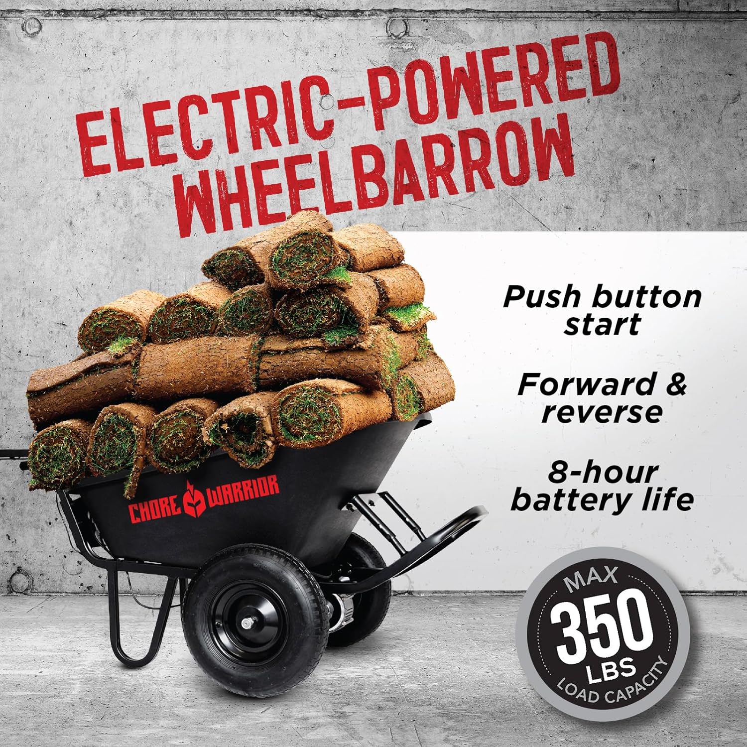 Electric Powered Wheelbarrow 350 LBS Capacity and 6 Cu FT Poly Tray 8 Hour Battery Life