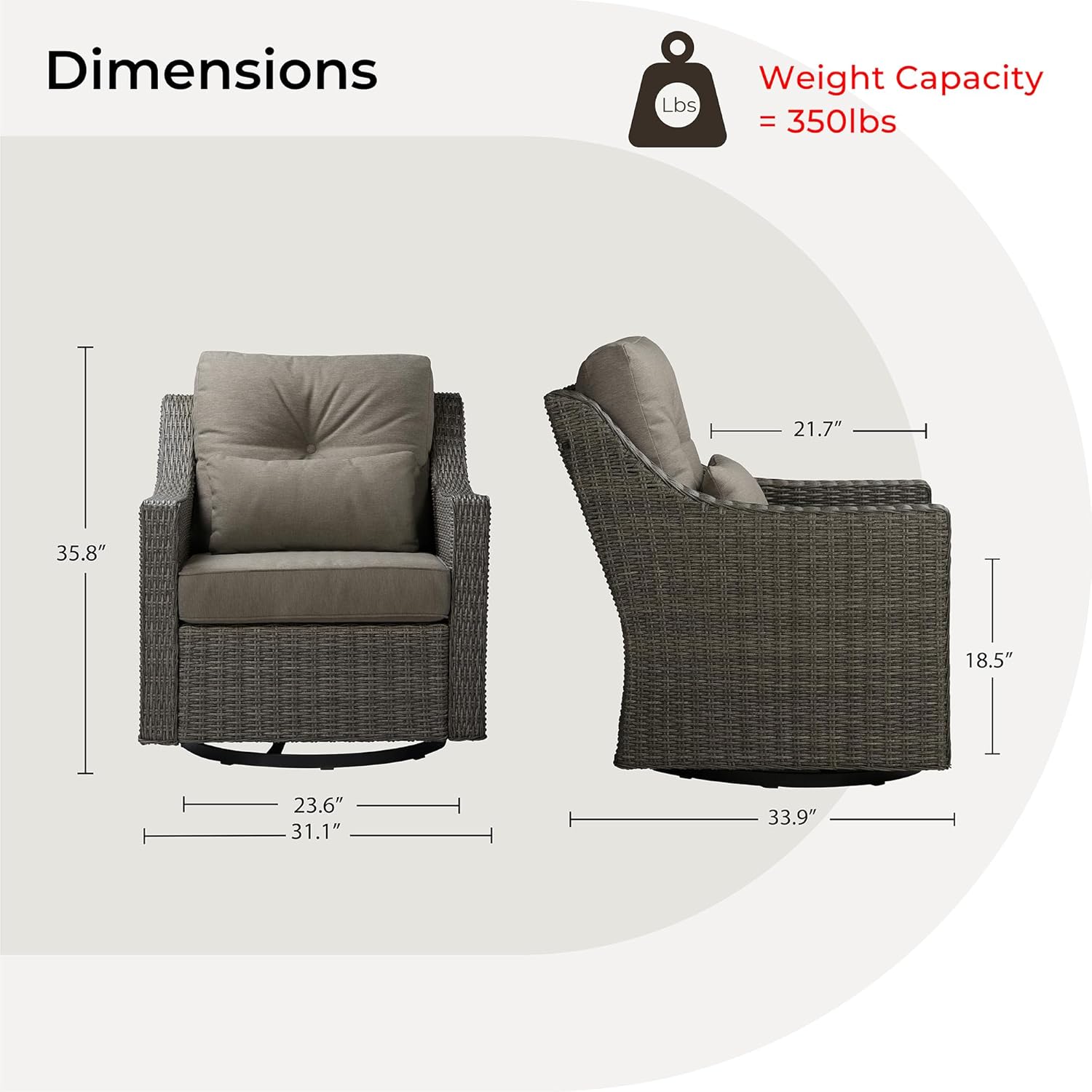 - Swivel & Rocker Motion: The chair offers a smooth, relaxing swivel and rocking motion that provides a gentle, soothing experience, perfect for unwinding after a long day. The 360-degree rotation grants you the freedom to enjoy every angle of your outdoor paradise.