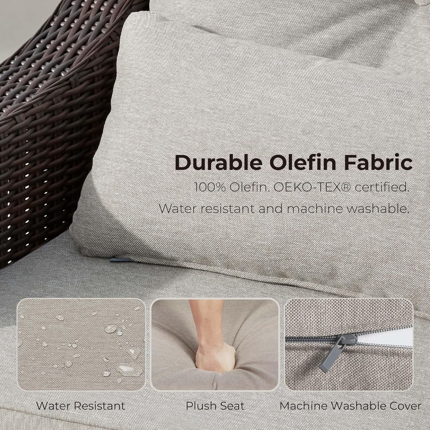 - Easy to Clean: The water-resistant 100% Olefin cushion covers are easy to maintain. Simply spot-clean with mild soap and water for regular care, or machine wash on a cold cycle for deeper cleaning. For protection during harsh weather, store the cushions under cover temporarily. Note: The product’s color may vary under different lighting conditions. For accurate color representation, always refer to the actual product.