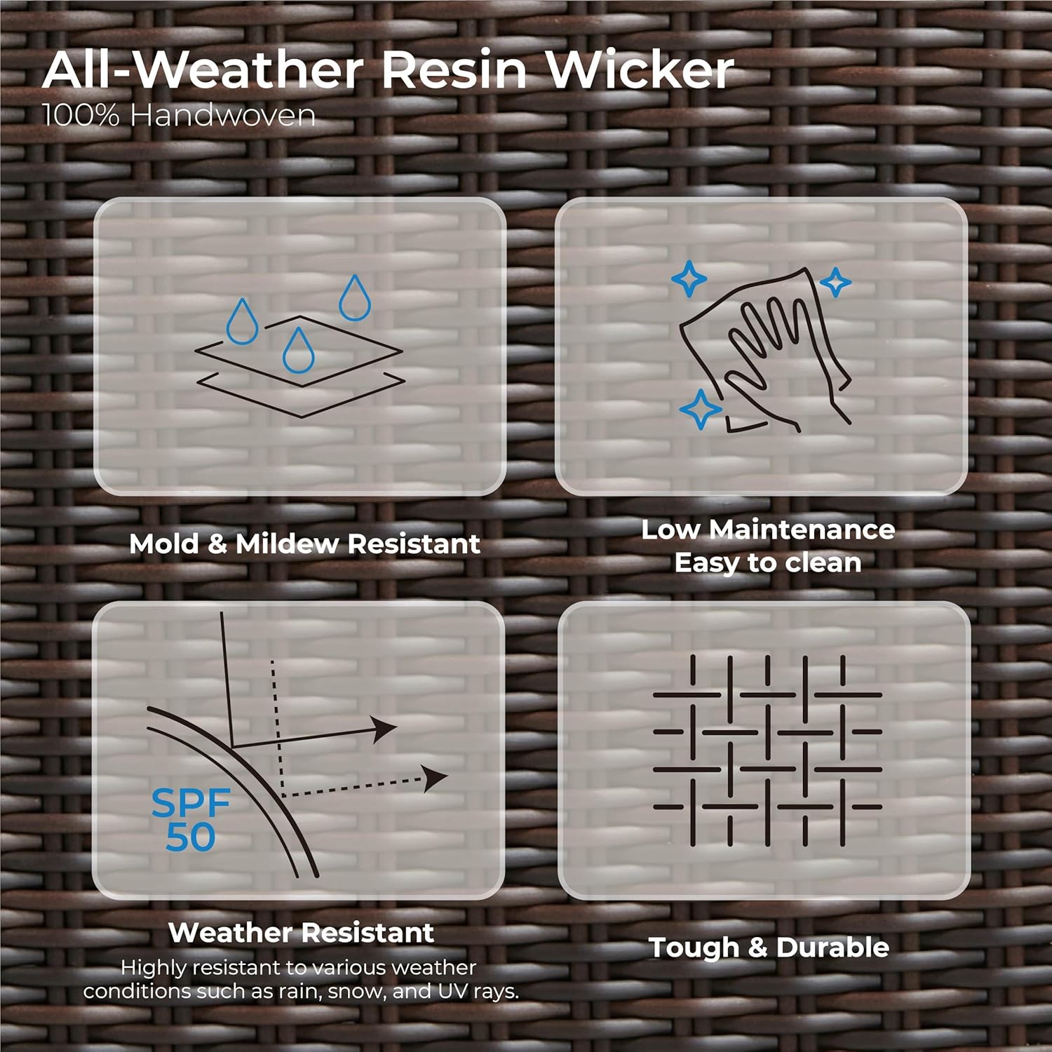 - Bistro Set with a Modern Farmhouse Vibe: Crafted with meticulous attention to detail, this patio bistro set is a seamless blend of rustic charm and contemporary design. It boasts all-weather resin wicker intricately handwoven around a sturdy e-coated steel frame, ensuring both durability and elegance.