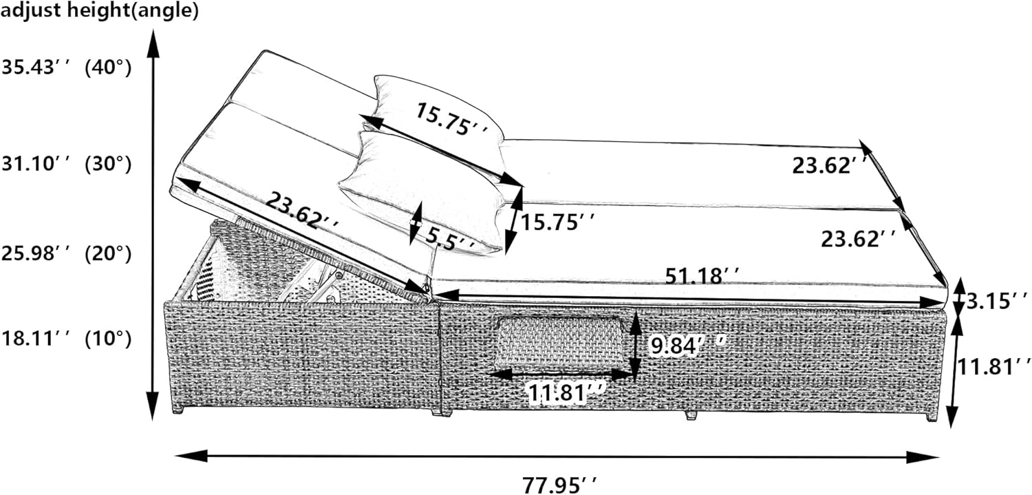 - π High Quality Wicker Rattan Set: The reclining chairs are constructed from all-weather PE rattan frame which is water-resistant and UV-resistant. The seat cushions are filled with 3.15'' thick sponge for superb comfort and durable. The breathable cushion covers for seats and pillows are all easy to replace and machine washable.