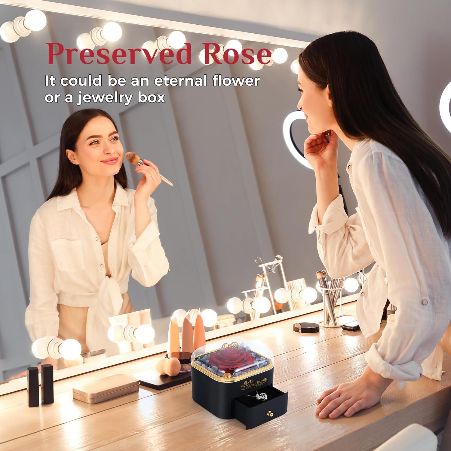 - Innovative Jewelry Drawer: Features a discreet drawer beneath the rose box, perfect for the included necklace or your personal jewelry piece, enhancing surprise for special moments.