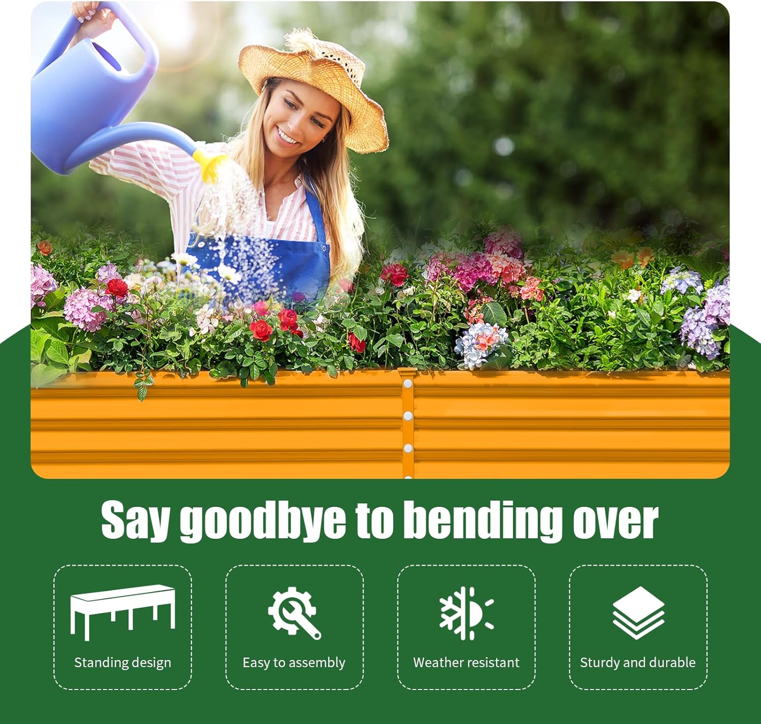 - 【Sturdy and Durable】The planter box is made from a combination of 4 galvanized sheets, a stainless steel shelf and 4 aluminum alloy legs, making it more durable than wooden garden box. And the rust-resistant properties ensure that raised bed stays in top condition for a long time.