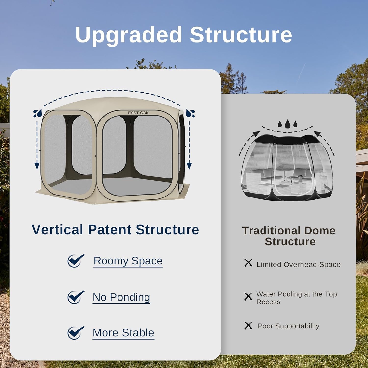 - ๐๐๐ด-๐ฃ๐ฟ๐ผ๐ผ๐ณ & ๐ฉ๐ฒ๐ป๐๐ถ๐น๐ฎ๐๐ฒ๐ฑ: The EAST OAK portable pop-up screen teent features a 4-sided B3 fine mesh design for 360ยฐ perfect ventilation to protect you from mosquitoes, bugs and anything the outdoors can throw at you. The tent body is made of high-quality Oxford fabric with anti-UV silver coating to achieve all-day UPF 50+ UV protection. Perfec for picnics, camping, and the beach