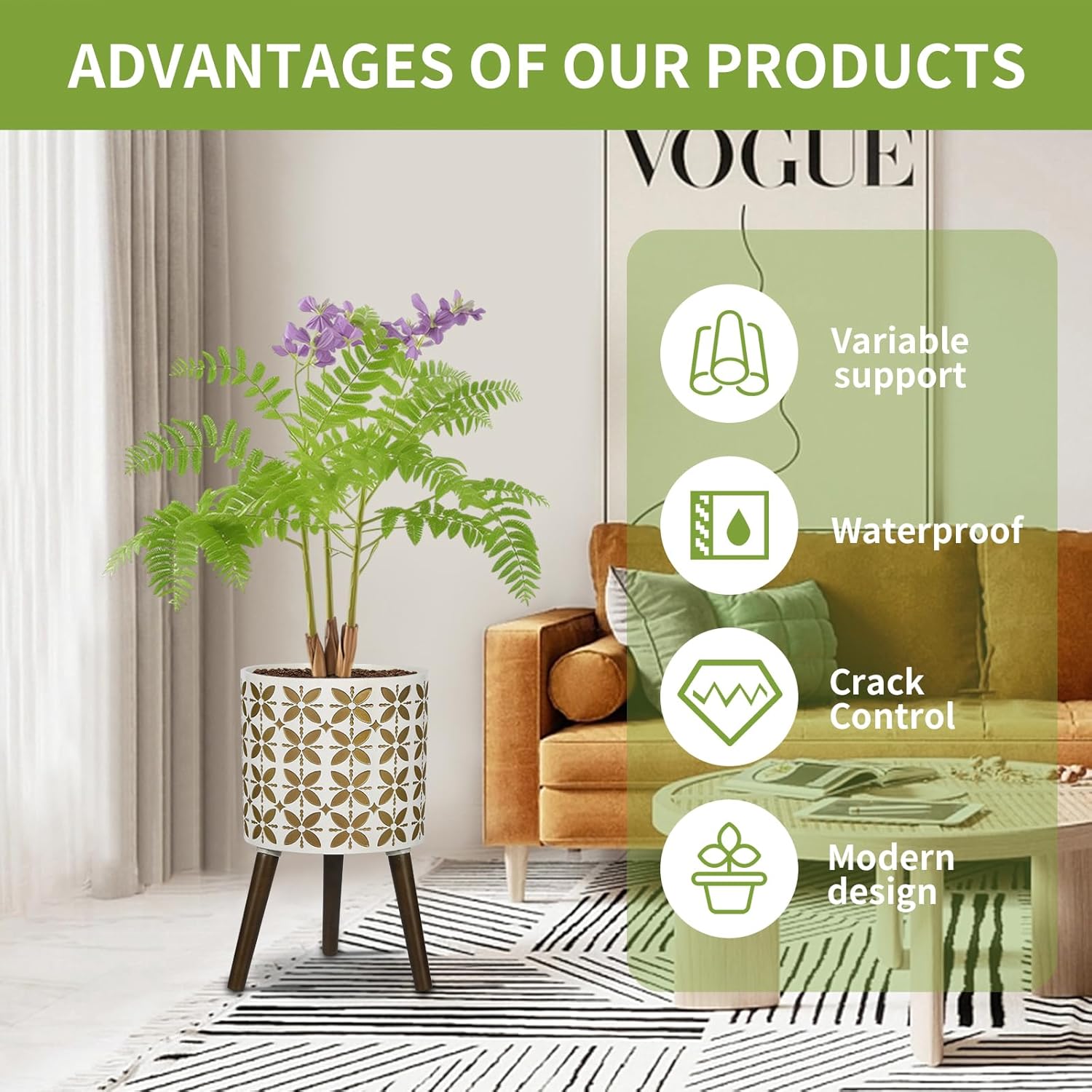 nacltlo12 Inch Planter with Stand,Plant Pot for Indoor Plants,Modern Mid-Century,Large Flower Planter Pot with Drainage Holes for Outdoor,White and xGold