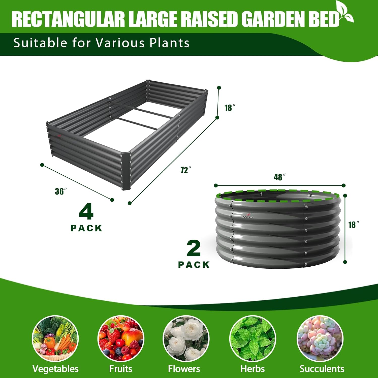 A ANLEOLIFE 6-Pack 4X4X1.5ft & 6X3X1.5ft Deep Root Galvanized Raised Garden Beds Outdoor for Planting Vegetables Flowers Herb, Quartz Grey