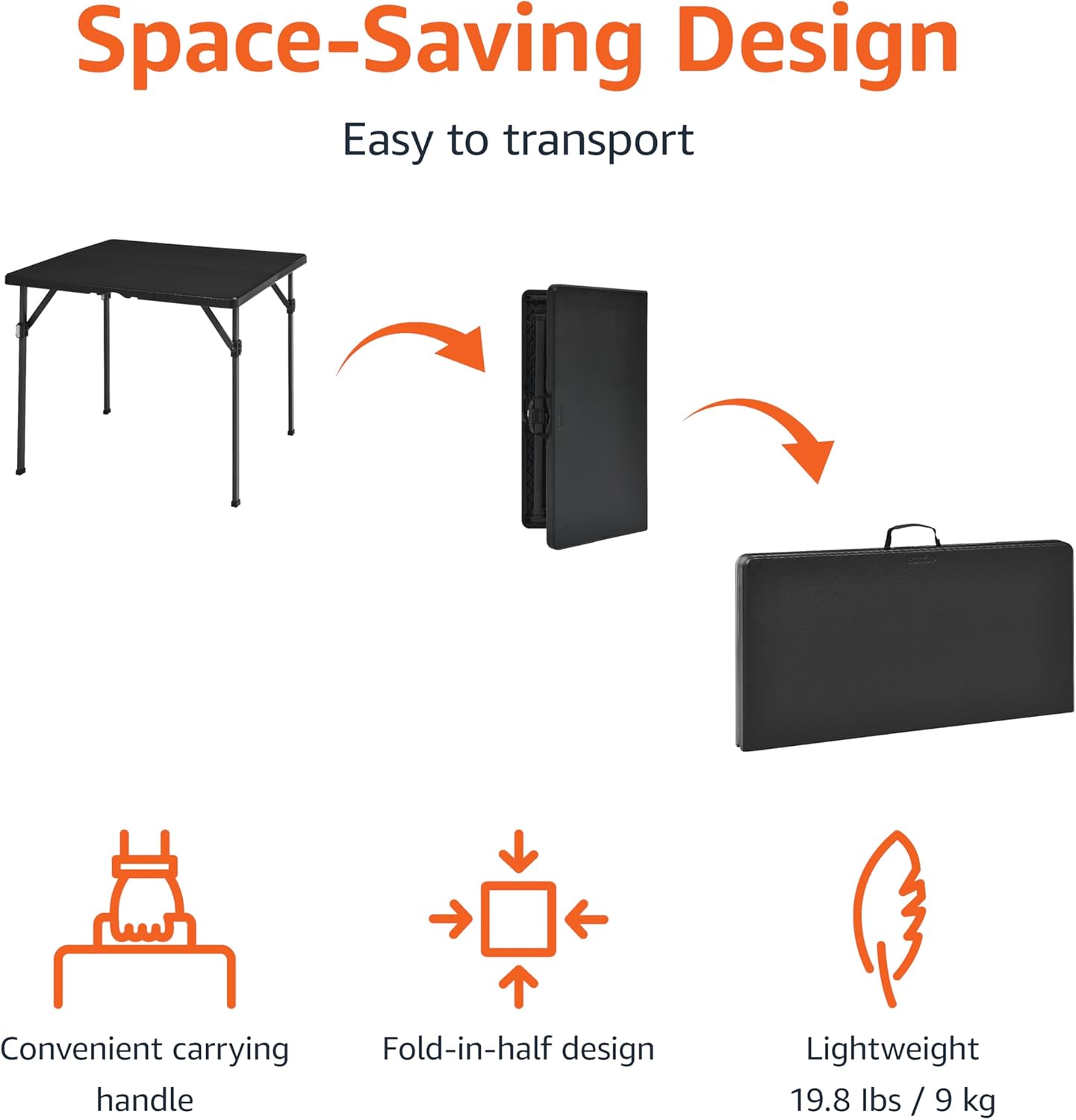 Amazon Basics 34 inch Portable Folding Dining Table with Carrying Handle, Black, 33.9 x 29.1 x 33.9 inch, Square