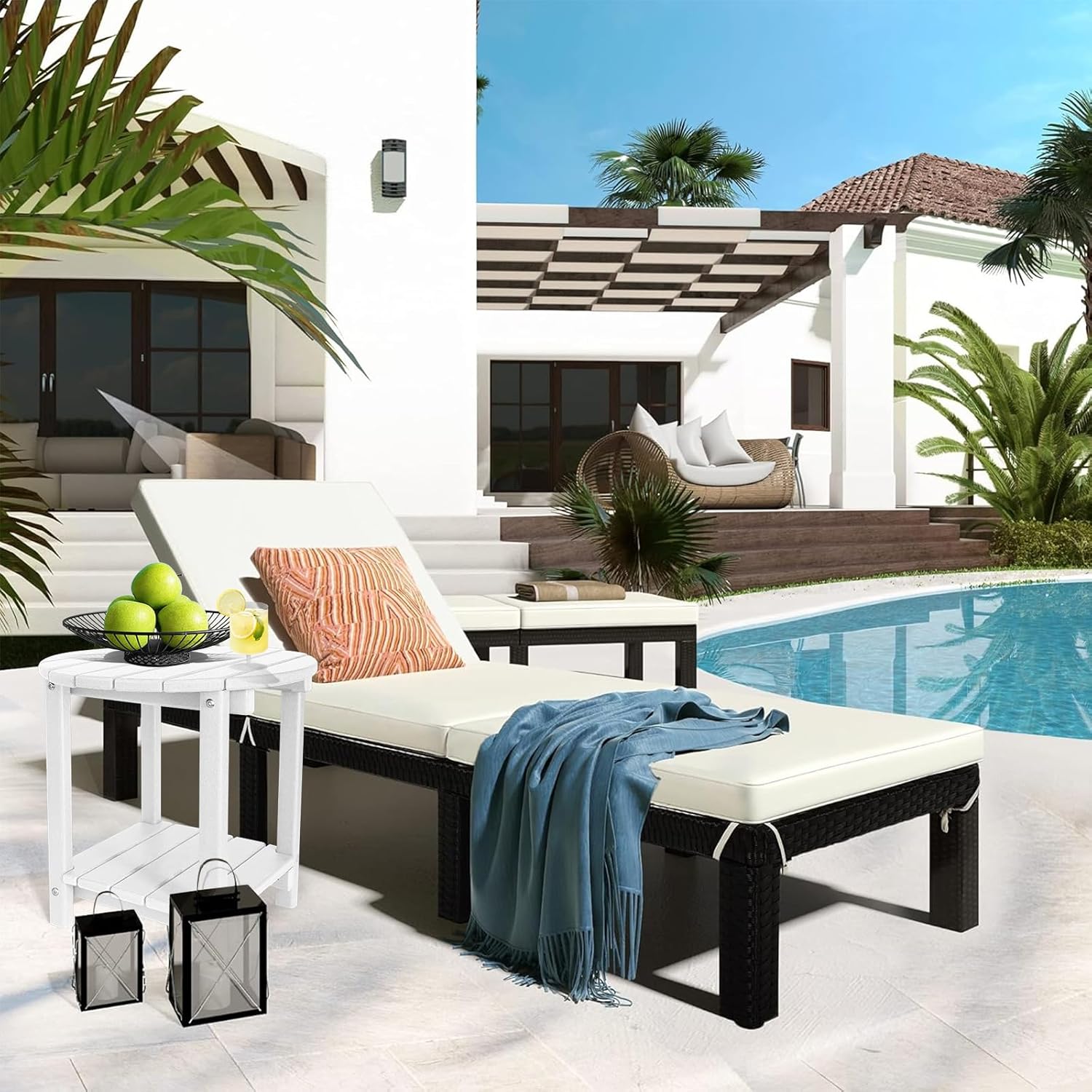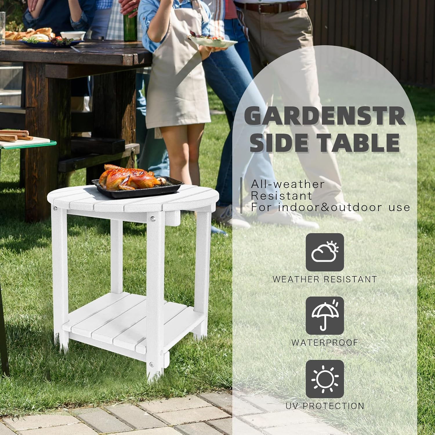 Adirondack Round Outdoor Side Table 2-Tier Storage Patio Side Table, HDPE End Tables for Backyard Pool Porch Garden Lawn (White)