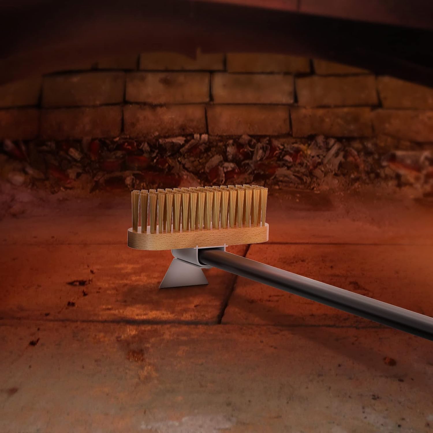 - PIZZA OVEN BRUSH AND ASH SHOVEL: The pizza oven brush is made with an aluminum handle and durable brass bristles, perfect for reaching deep into your pizza oven for cleaning
