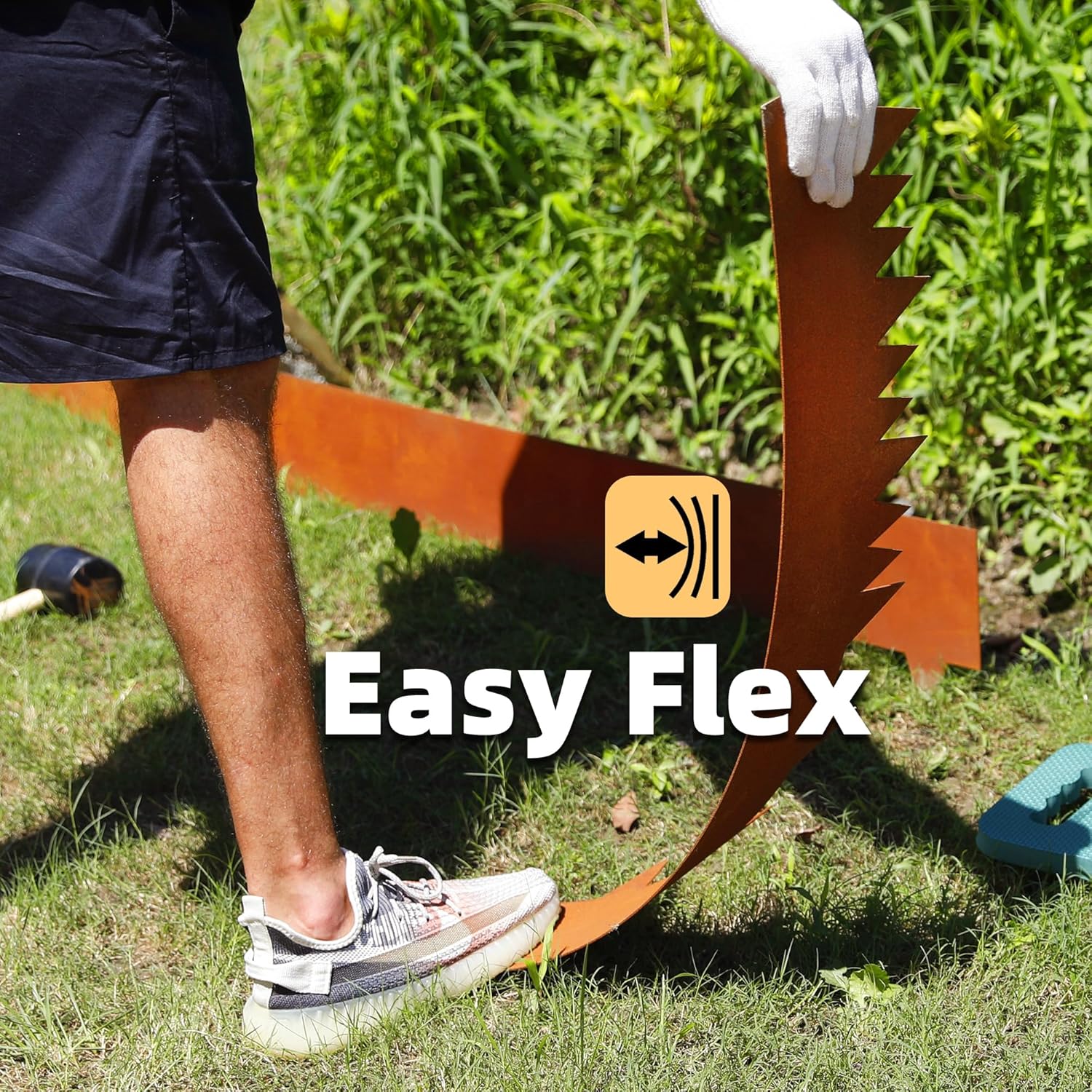 Solution4Patio 6-Pack Corten Steel Garden Landscape Edging with 7X Clips, 8" H Hammer-in Heavy Duty Bendable Metal Pre-Rusted Border Edging Strips for Lawn, Yard (20ft Total)