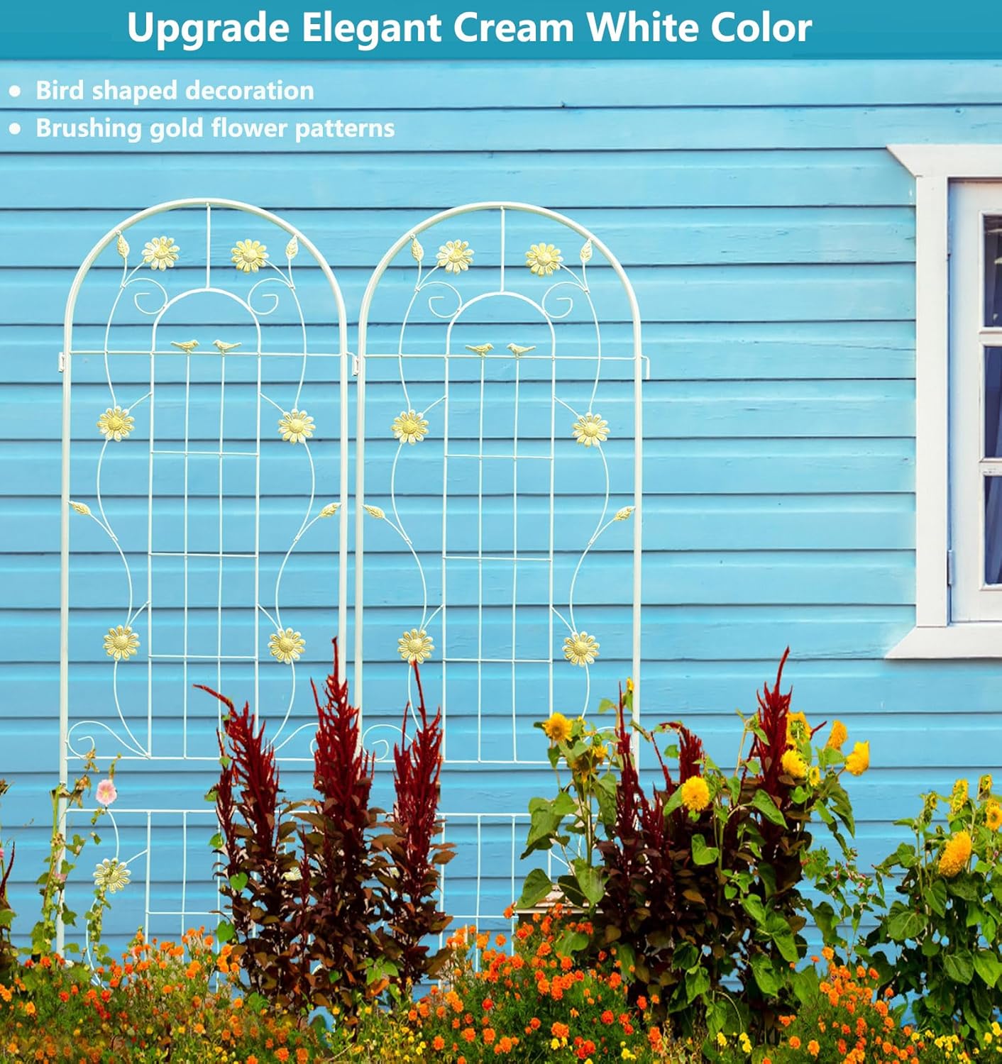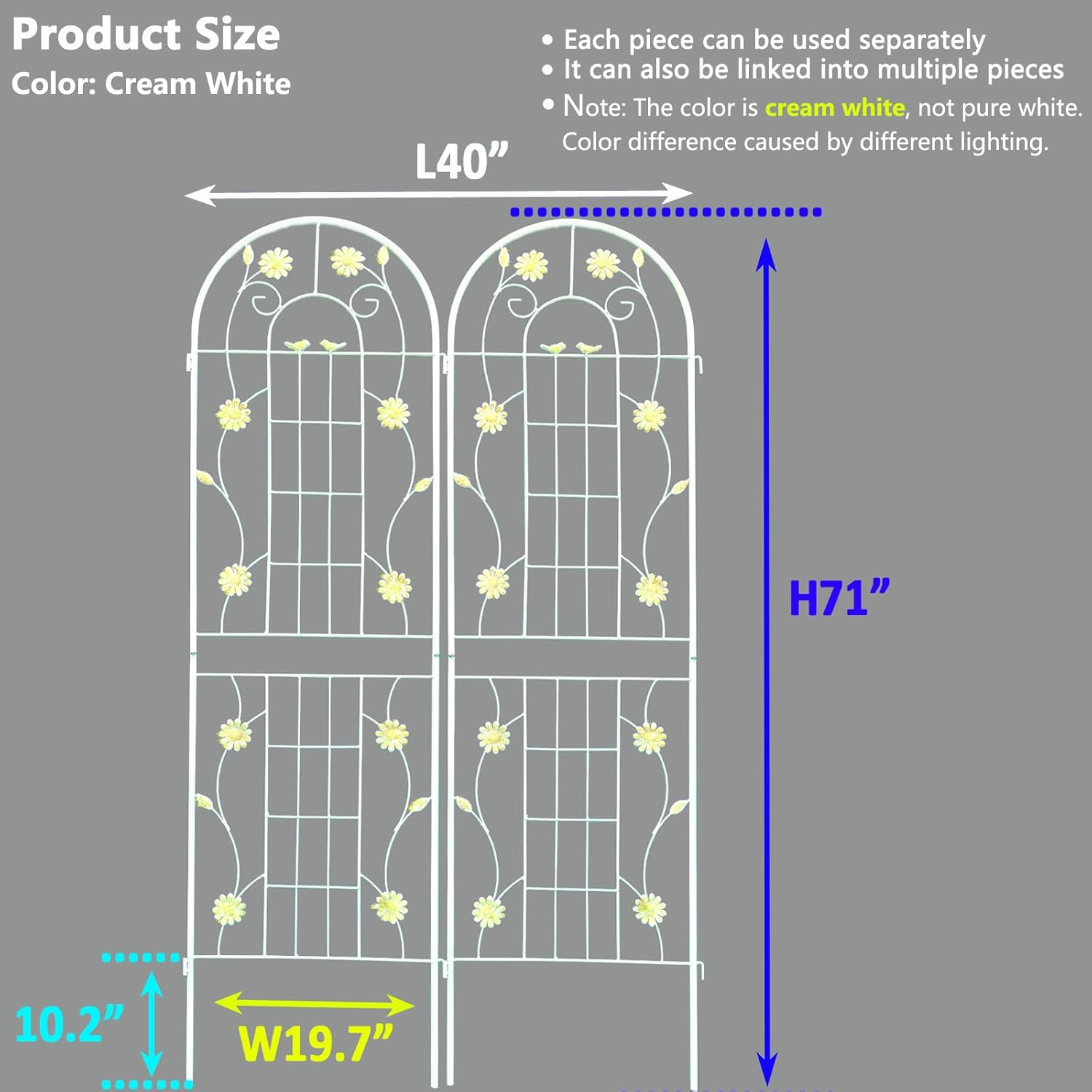 2 Pack Metal Garden Trellis for Climbing Plants 71" H Cream White Garden Fence Rustproof Trellis Support Roses Flower Outdoor Lawn, Cream White