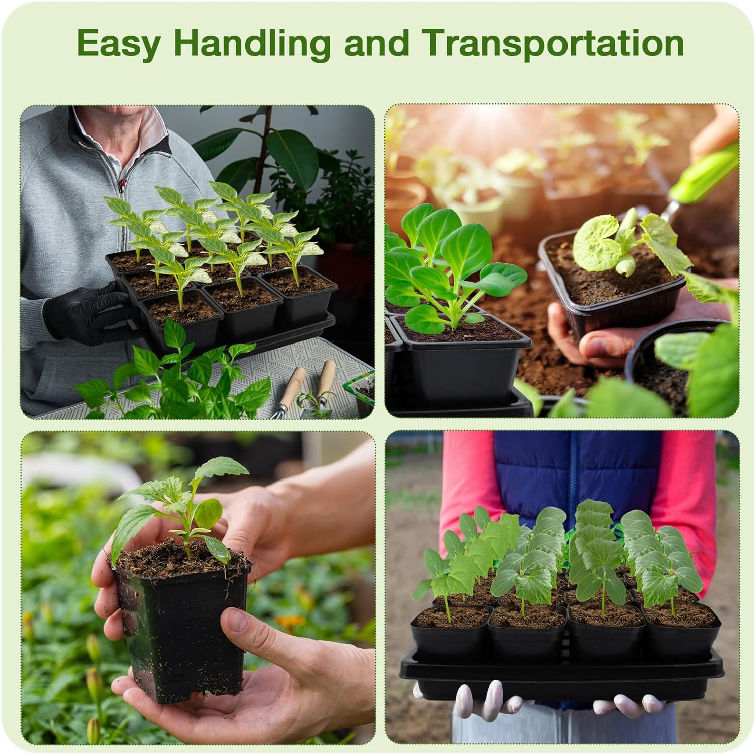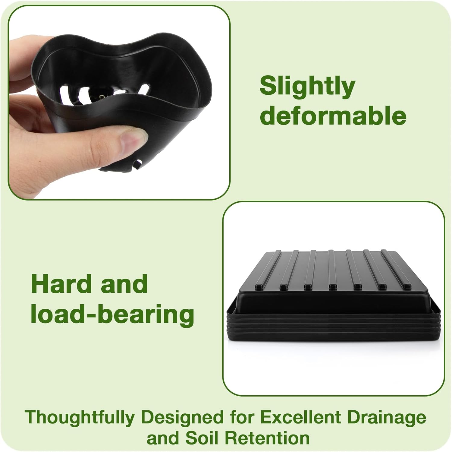 - [Convenient Design] The seedling trays feature no drainage holes, serving as a perfect complement to the cups. They efficiently collect excess water, making seedling care a breeze and maximizing efficiency in your gardening endeavors.