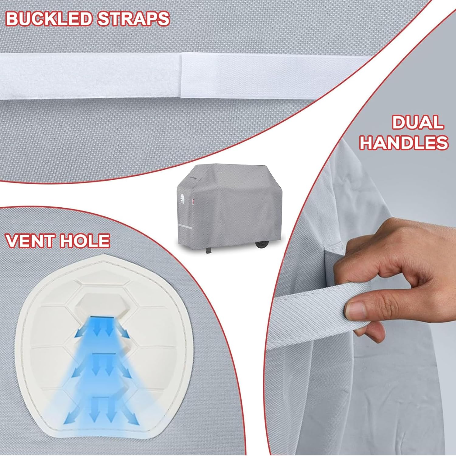 - 【Dimension and Premium Material】- Measures: 58"(W) x 26"(D) x 47"(H). Heavy-duty Oxford with new upgrade PVC coating. Fits most bbq grills with 3-4 burners. Please confirm the measurement of your grill before purchasing.