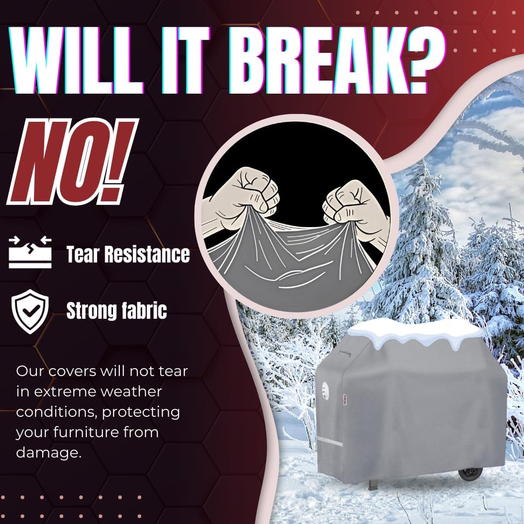 - 【Protection Function】- Waterproof, dustproof, rip-resistant, UV resistant. New high-quality fabric makes the grill cover less susceptible to weather conditions. Fits most gas grills up to 68-inch width, fits the brand as Weber, Blackstone, Char-Broil, etc.