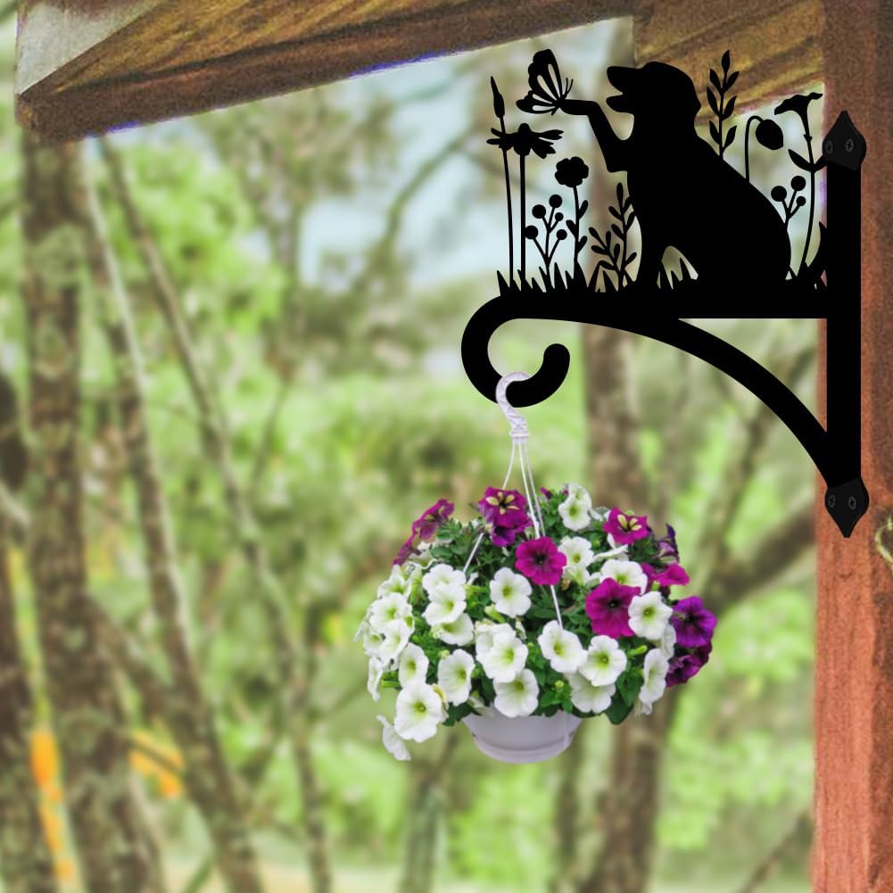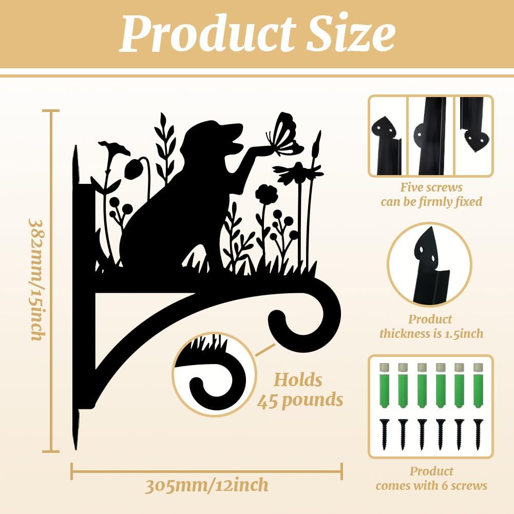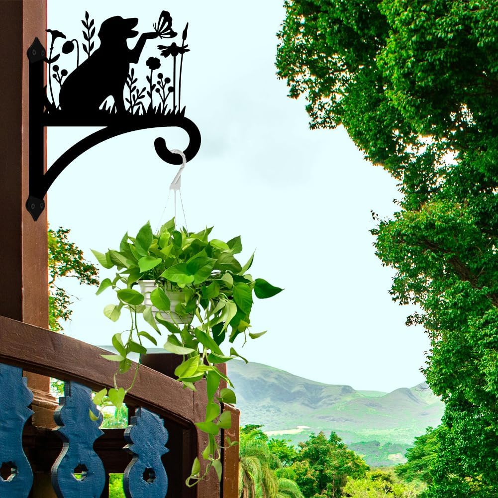 Peacoblue Iron Plant Hangers Holder for Outdoor Indoor Hanging Plants Fern Pots, Lantern, Bird Feeder, Wind Chimes, 12โx14โ Dog Weather Resistant Metal Wall Brackets Hooks for Porch, Garden, Home(Dog)