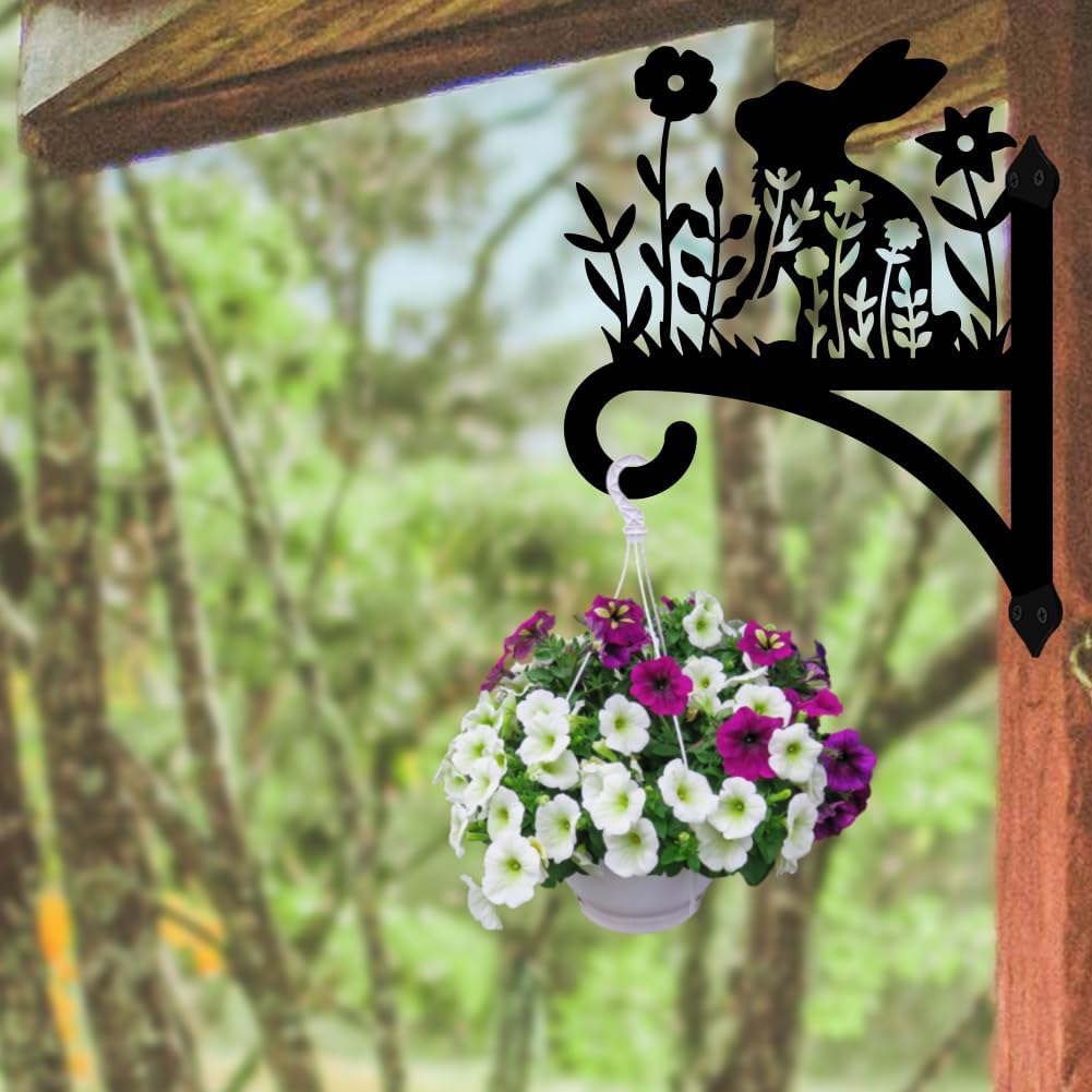 Peacoblue Iron Plant Hangers Hooks for Outdoor Indoor Hanging Plants Flower Fern Pots, Lantern, Bird Feeder, Wind Chimes, 12”x14” Weather Resistant Metal Wall Holder for Porch Garden Farmhouse(Rabbit)