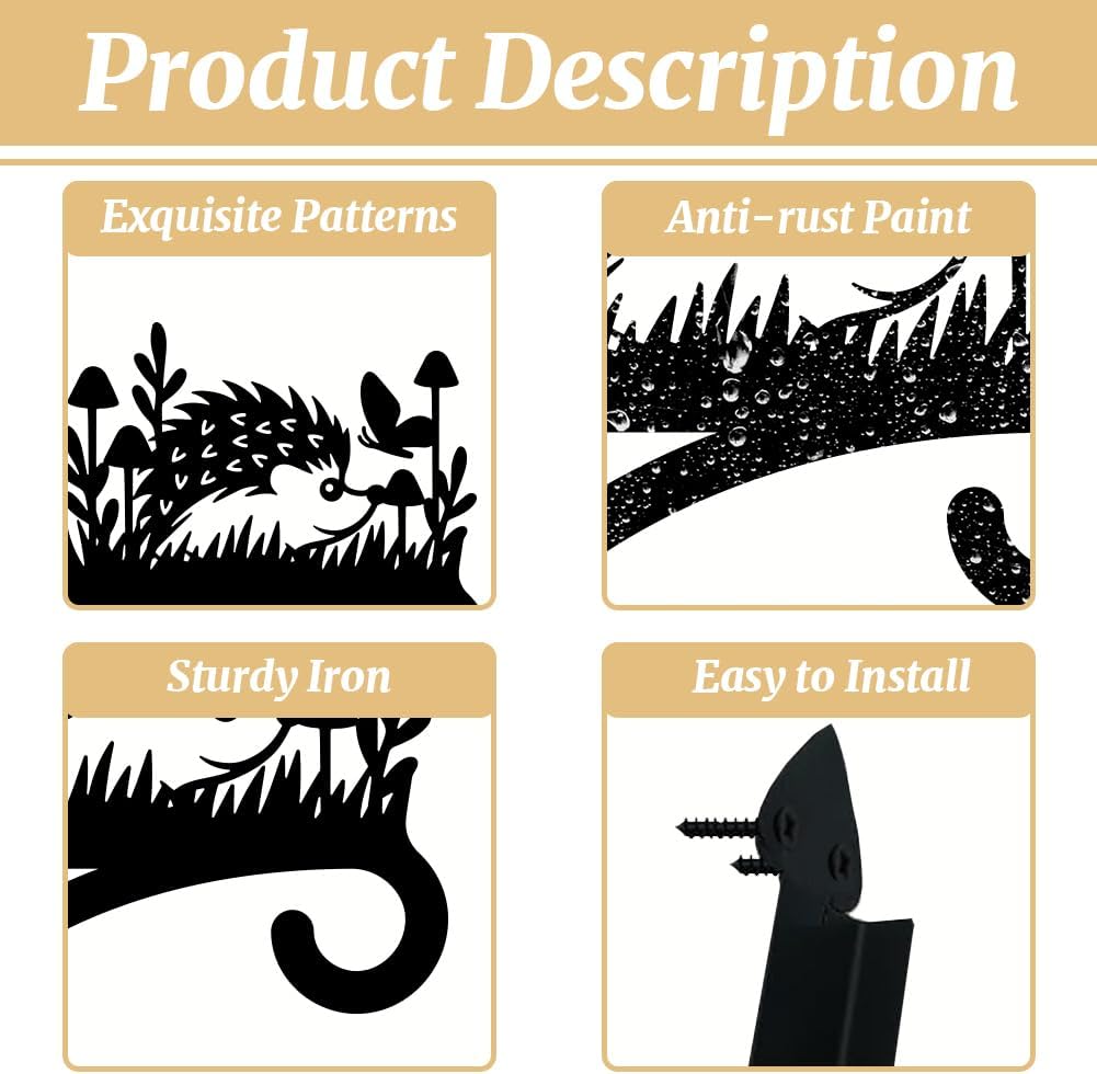 peacoblue Iron Plant Hangers Hooks for Outdoor Indoor Hanging Plants Flower Fern Pots Lantern Bird Feeder Wind Chimes, 12”x14” Weather Resistant Metal Wall Holder for Porch Garden Farmhouse(Hedgehog)