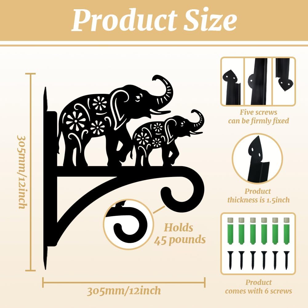 peacoblue Iron Plant Hangers Holder for Outdoor Indoor Hanging Plants Flower Fern Pots Lantern Bird Feeder Wind Chimes, 12โx14โ Weather Resistant Metal Wall Hooks for Porch Garden Farmhouse(Elephant)