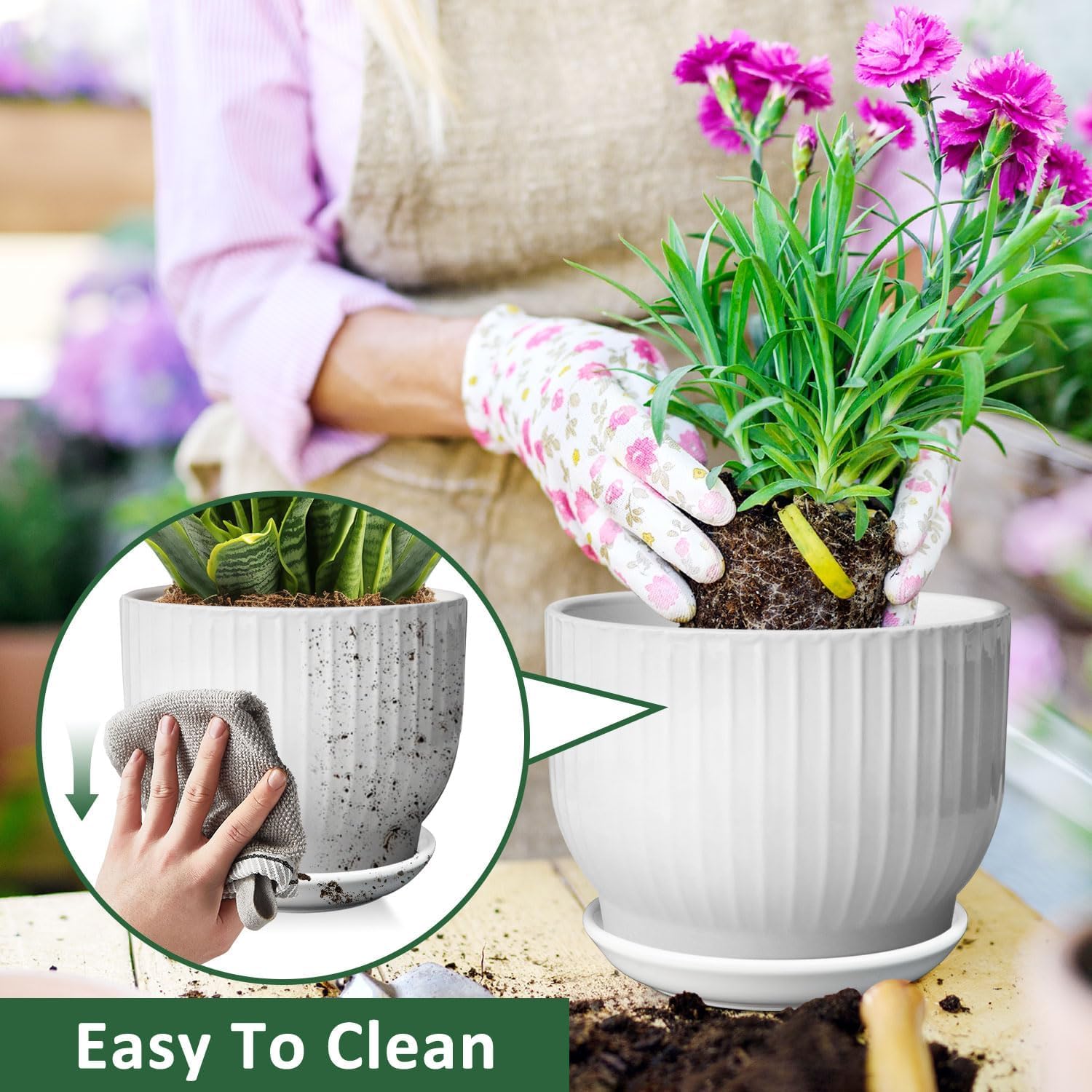 - 【High Quality & Upgraded Package】These flower pots are made of high-quality ceramics, which are very strong and durable, and not easy to break. In order to protect the ceramic flower pots from damage during long-term transportation, we have upgraded the product package.