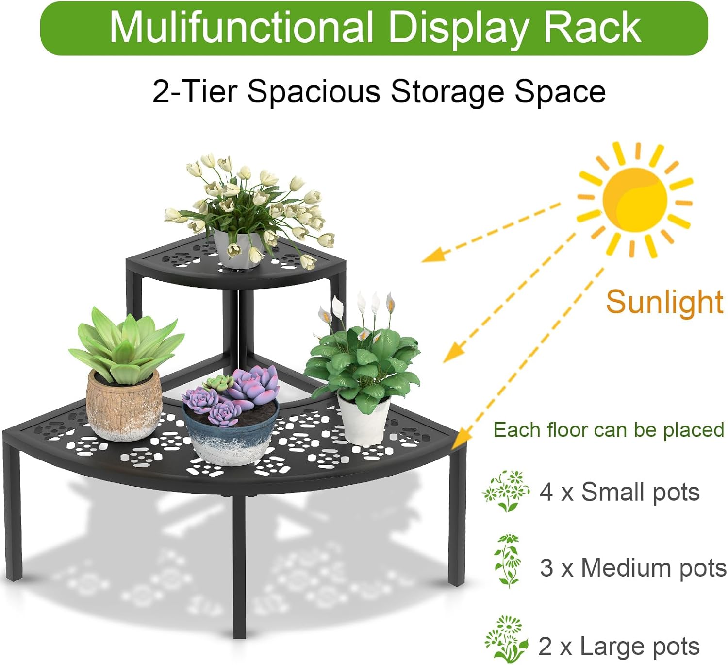aboxoo 2 Tier Plant Stand Flower Pot Rack for Patio,Metal Stair-Step Style Corner Shelf Planters,Hevay Duty Plant Stand,Quarter Round Display Holder for Indoor Outdoor Use(Black)