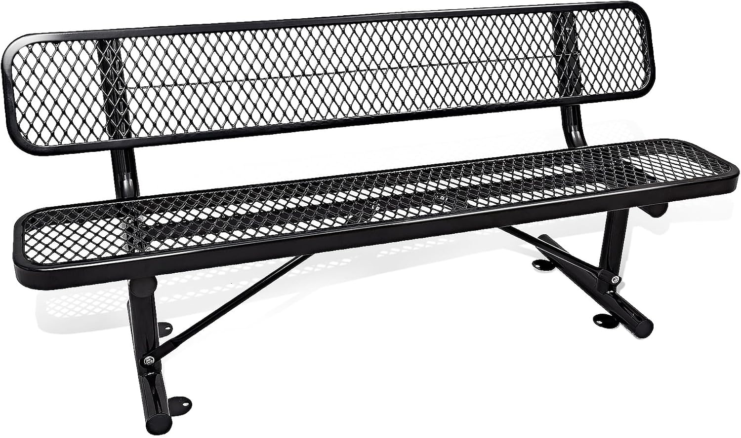 6FT Heavy Duty Park Bench with Back Portable Frame, Outdoor Metal Park Bench with Backrest, Steel Mesh Outdoor Bench for Garden, Lawn, Patio, Porch, Park, Yard (Black, 72.4" L x 23.2" W x 32.5" H)