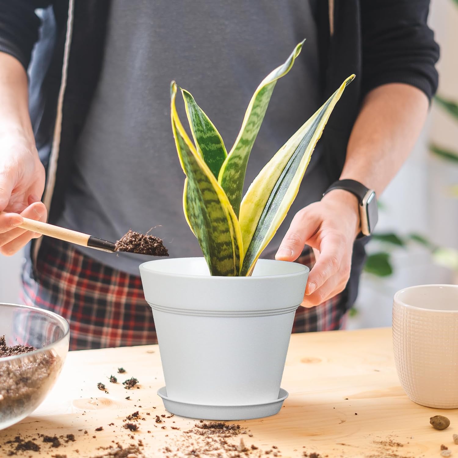 - 【Drainage Holes and Trays】Each plant pot features well-designed drainage holes at the bottom to ensure proper water flow. Additionally, saucers catch excess water, keeping your growing area clean and tidy while also ensuring that your plants remain hydrated without becoming waterlogged.