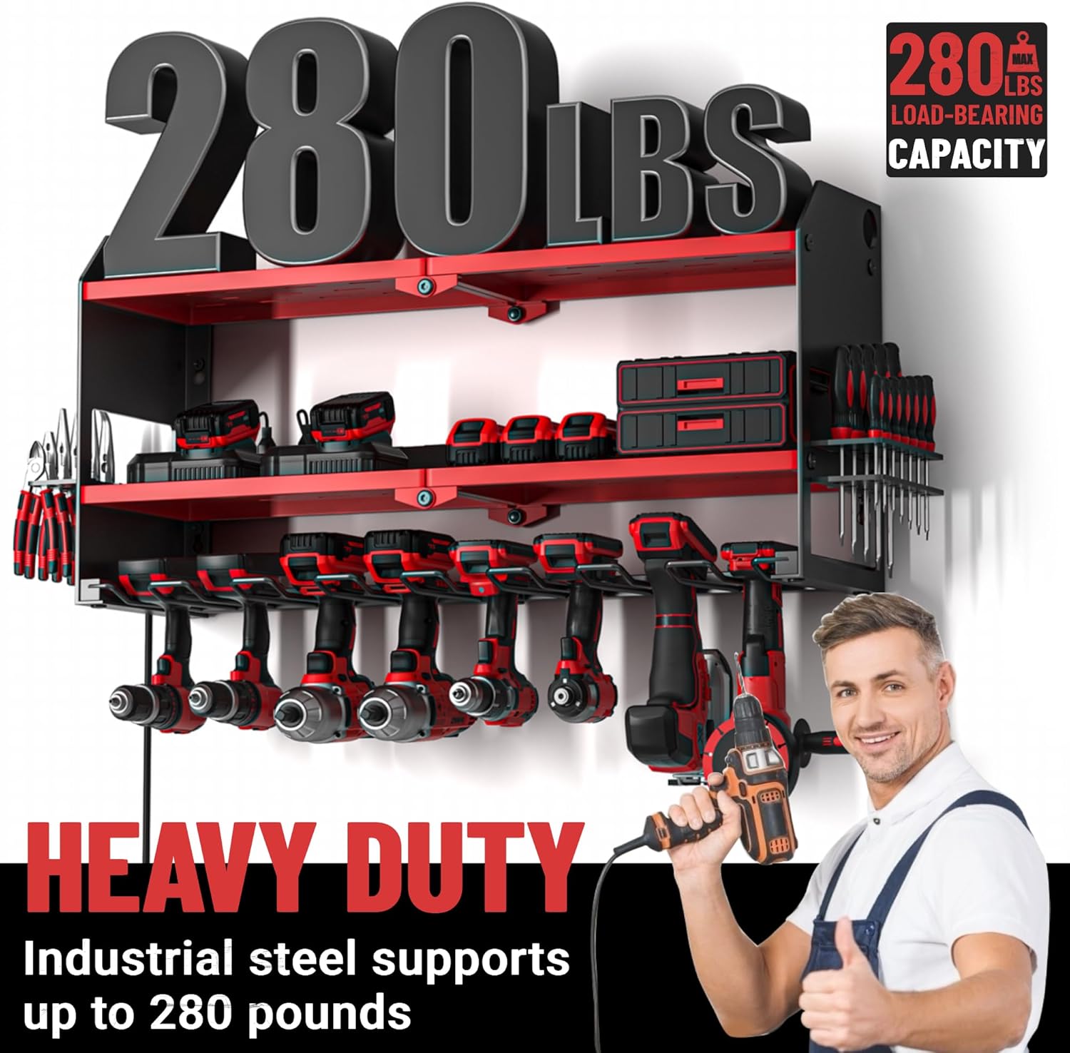 - 【HEAVY DUTY & DURABLE】:Our drill rack is made of industrial-grade steel and equipped with high-quality mounting screws, with a total load-bearing capacity of up to 280LBS. The durable black powder coating prevents rusting and lasts a lifetime.