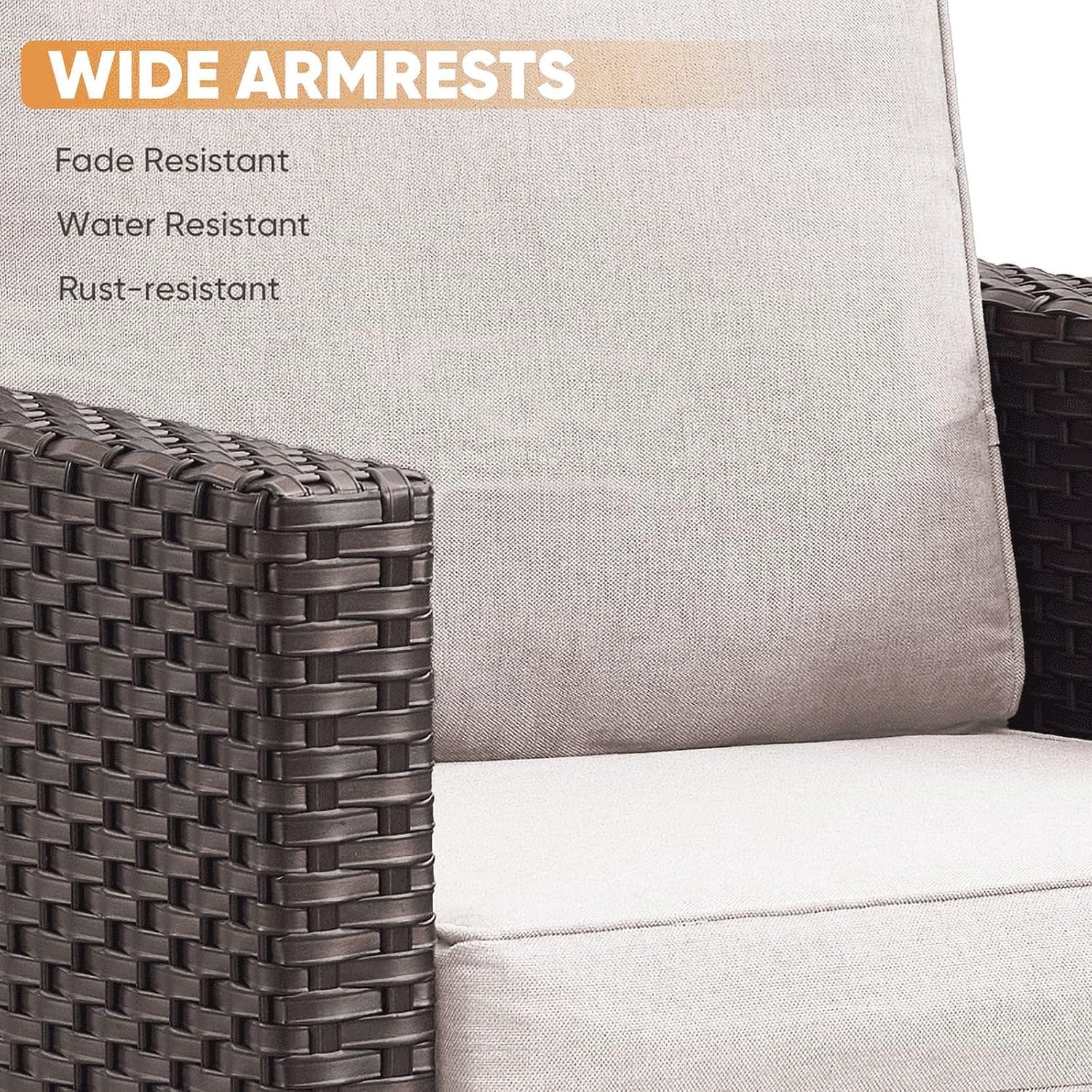 - Durable Sturdy Construction:All made with anti-rust powder-coated metal frame and high-quality Handwoven PE wicker which makes this patio furniture set resistant to UV and all weather,The upgrated trapezoidal feet provides strong support,with the non-slip plug, it will help you to avoid scratches on the floor when you move the furniture around.