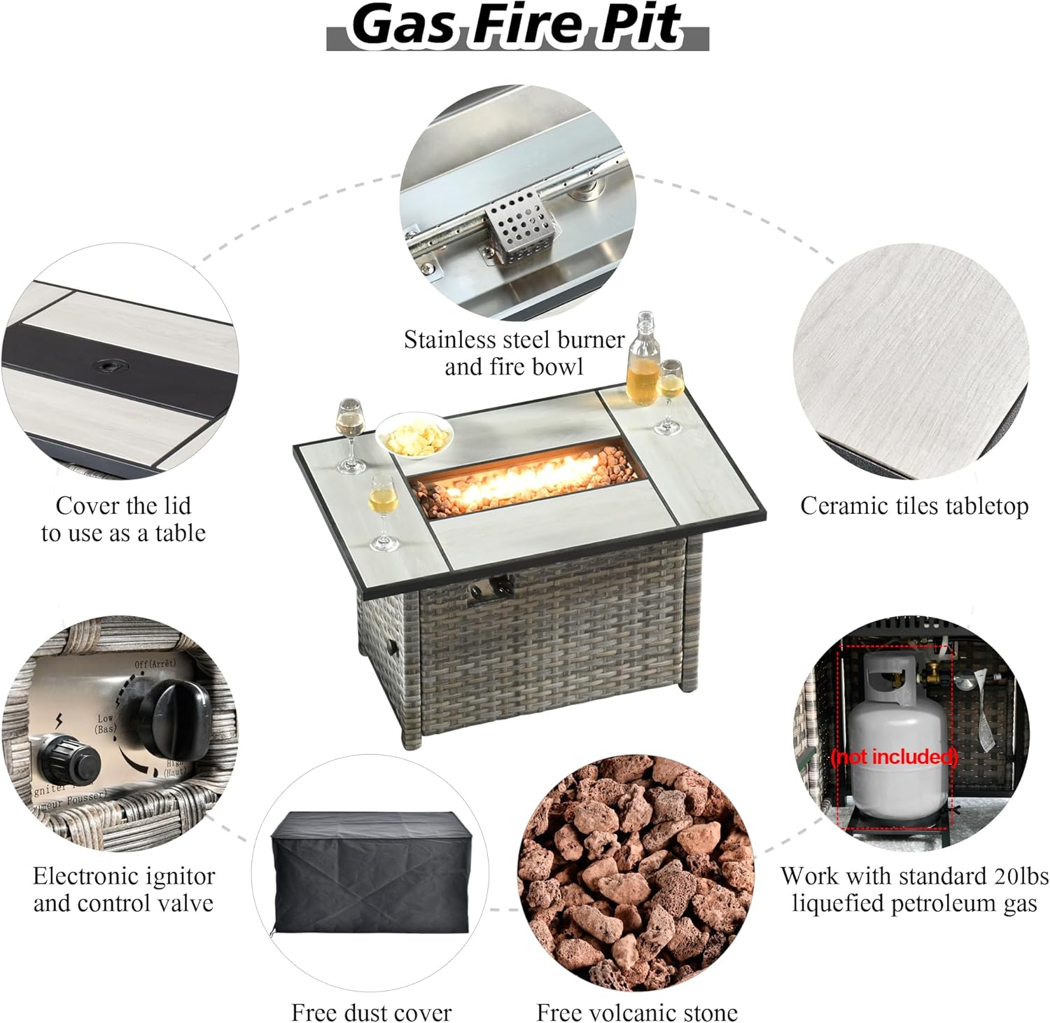 HOOOWOOO 9 Piece Modular Patio Outdoor Sectional Furniture Set with Large Propane Fire Pit Table,Wicker Conversation Sofa Set with Swivel Chairs,Outside Couch Set(Dark Grey)