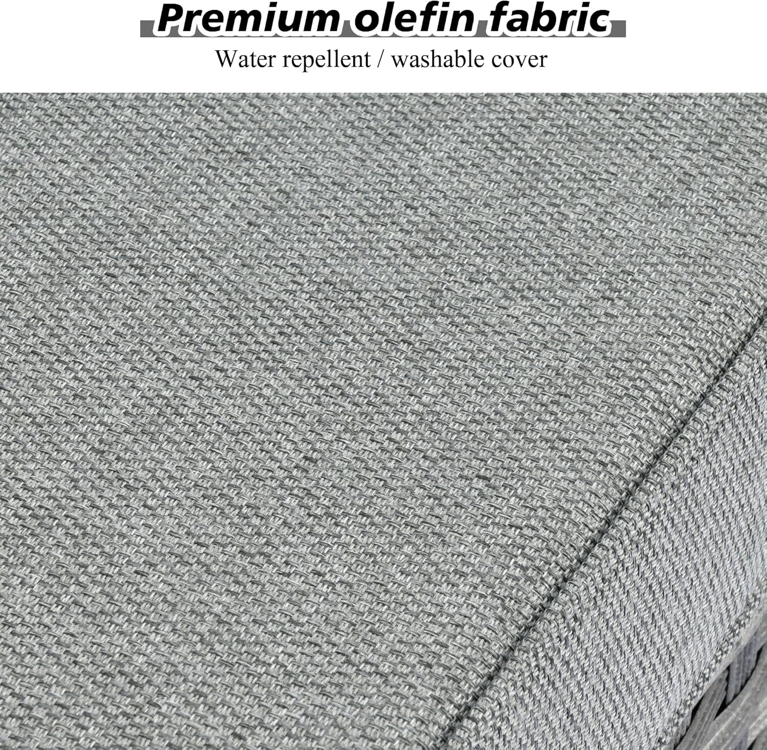 - Weather Resistance: PE strengthen wicker UV treated for long lasting. Cushions with yarn dyed woven cover features with UV-resistance, water drops/spilt resistance and good ventilation, resists water drops, coffee spilt. Unlike cheaply made thin print fabric, yarn dyed woven fabric got beautiful texture