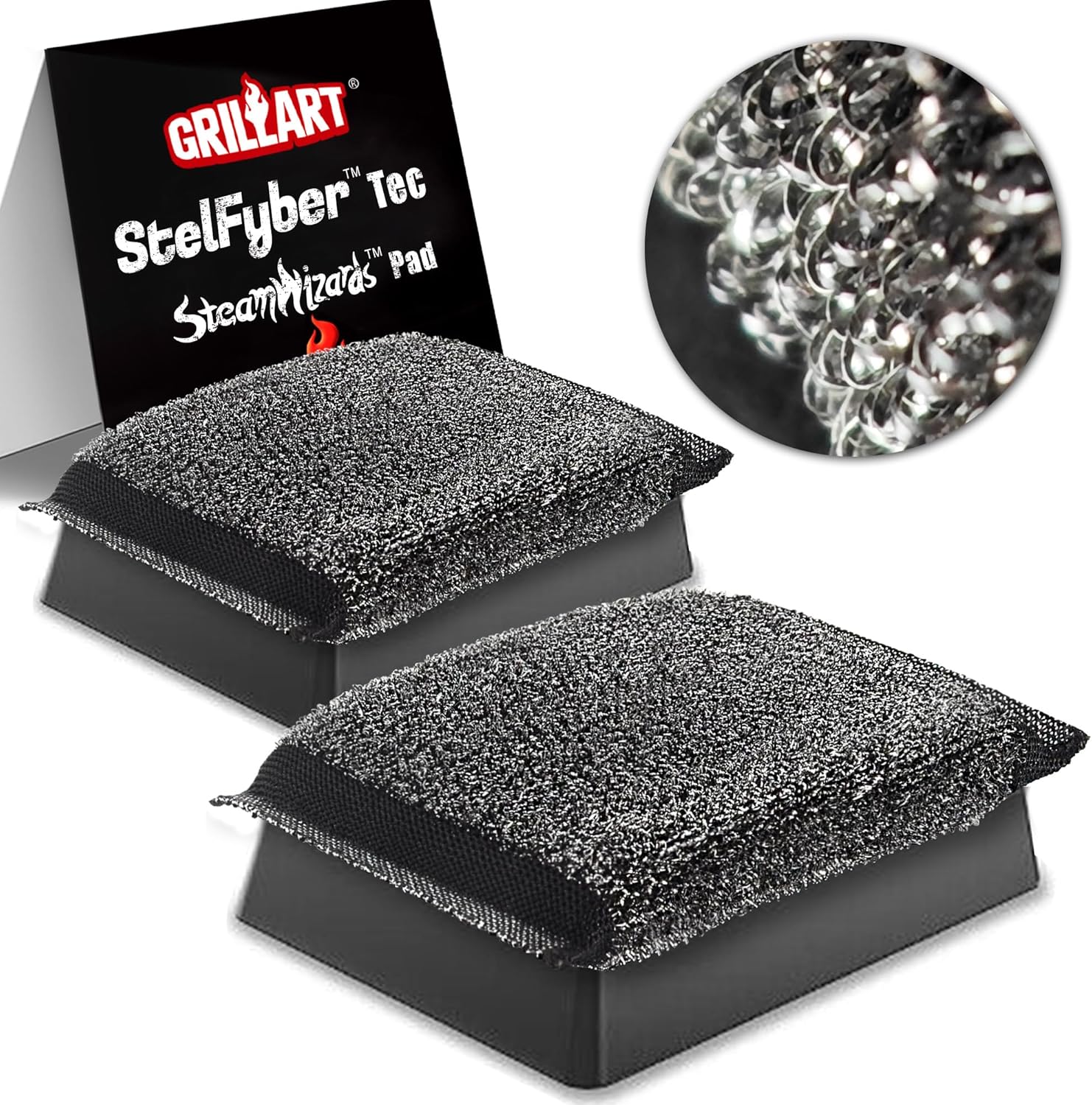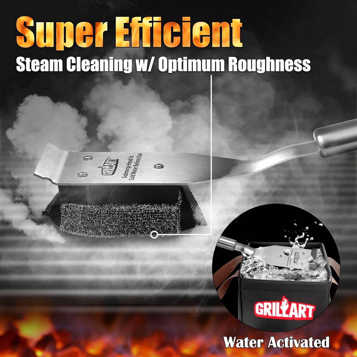 - 【Advanced Cleaning Efficiency】Flexible stel-fiber design gives you an optimum roughness, less aggressive than wire, so won’t scratch grate; but more abrasive than foam-wrapped fabric type, way more effortless to clean especially with the help of sufficient hot steam;