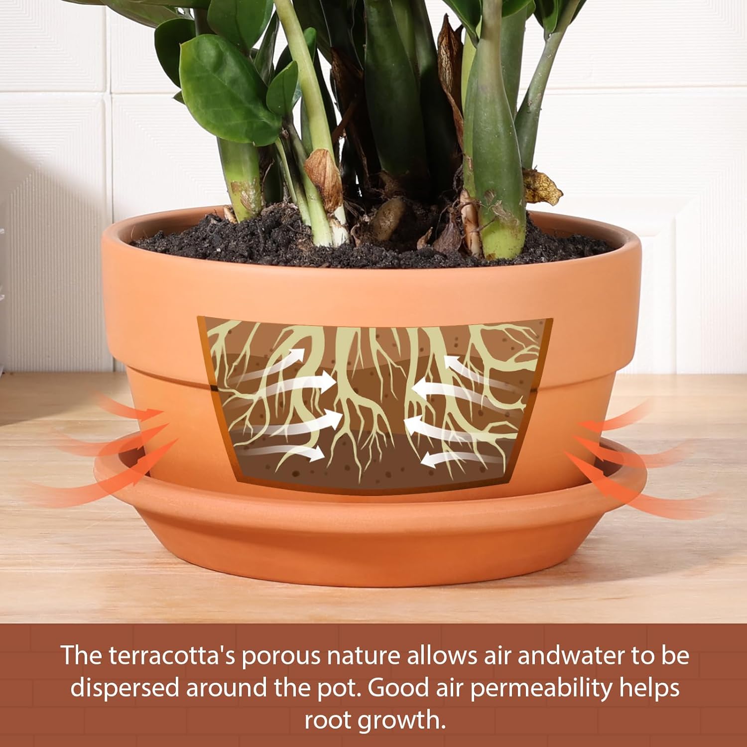 - Terracotta Pots: Terracotta plant pots features highly drained, breathable. It allows air and water to disperse quickly around the pot, promoting water absorption by roots. Great for fragile plants, or those that dislike wet conditions