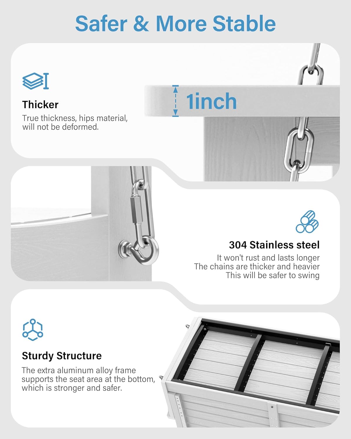 - [Heavy Duty]:The YEFU swing bench has two seats. Seat dimensions: 47.8" W x 18.3" D x 21.78"H. Able to better support your body. Chain length is 89". Suitable for both adults and children. Weight capacity is 800LBS.