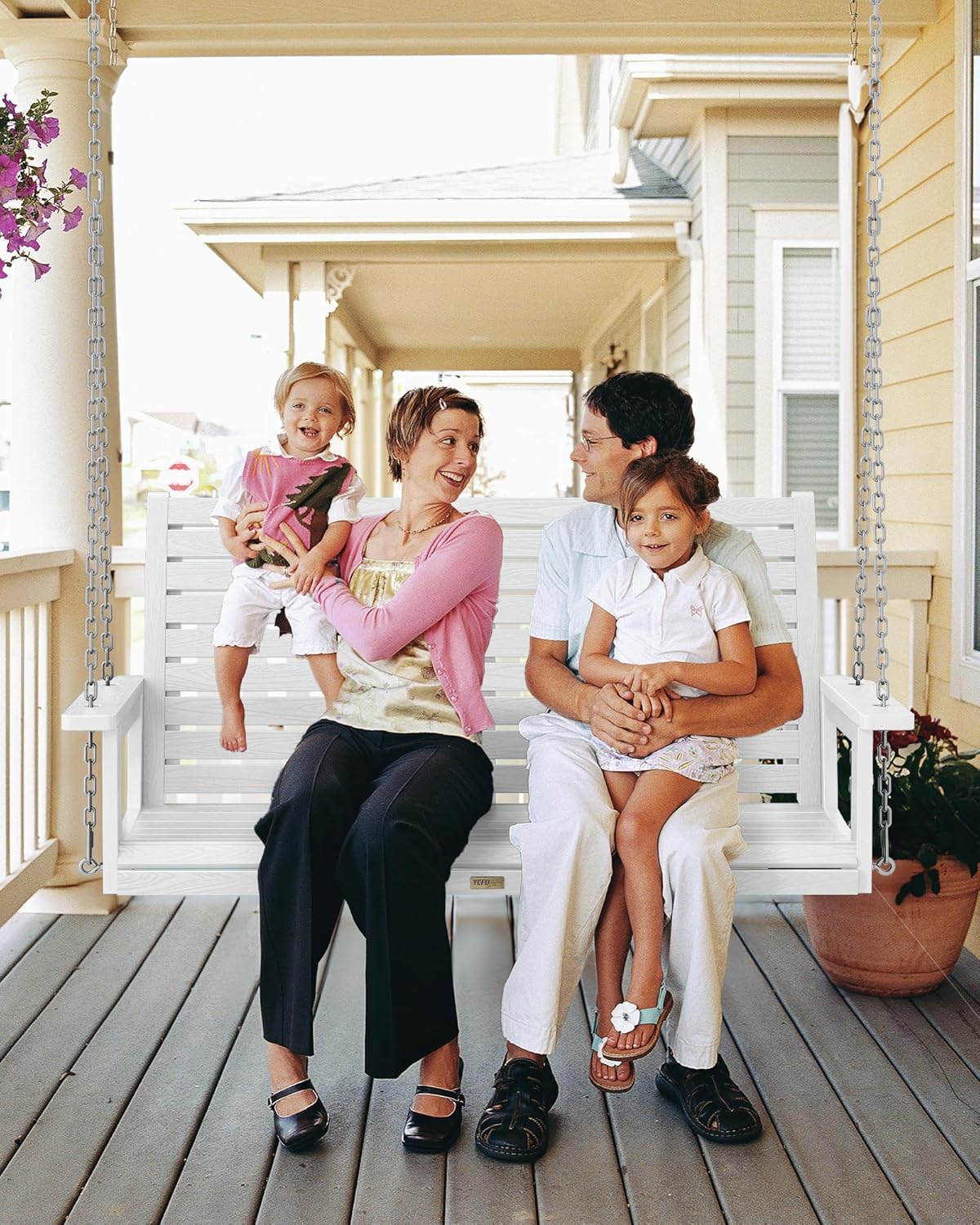 YEFU Hanging Porch Swing Set of 2,2-Seat Patio Swing Bench,All-Weather Swing Chair with Hanging Chains,Look Like Real Wood,for Garden and Courtyard,800LBS Weight Capacity,4FT,White