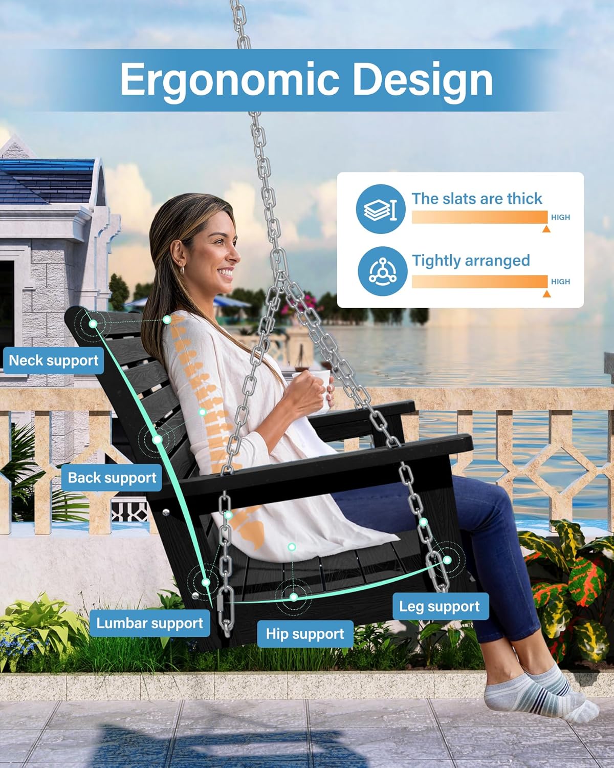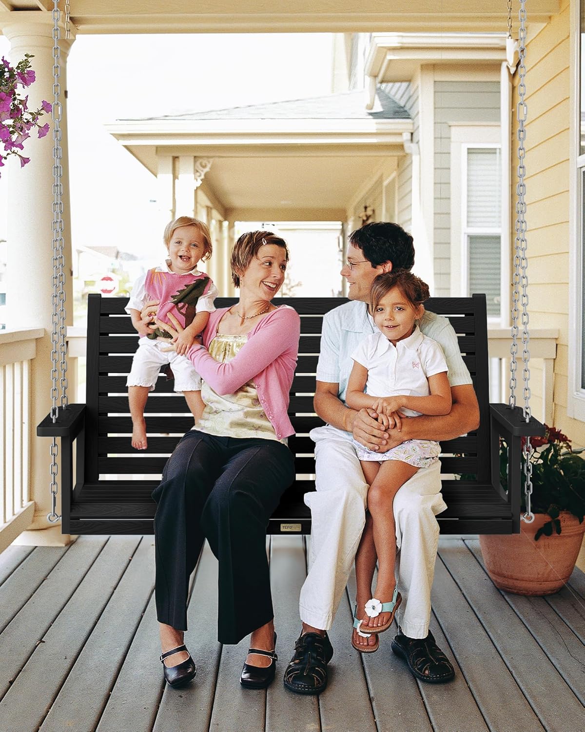 YEFU Hanging Porch Swing Set of 2,2-Seat Patio Swing Bench,All-Weather Swing Chair with Hanging Chains,Look Like Real Wood,for Garden and Courtyard,800LBS Weight Capacity,4FT,Black