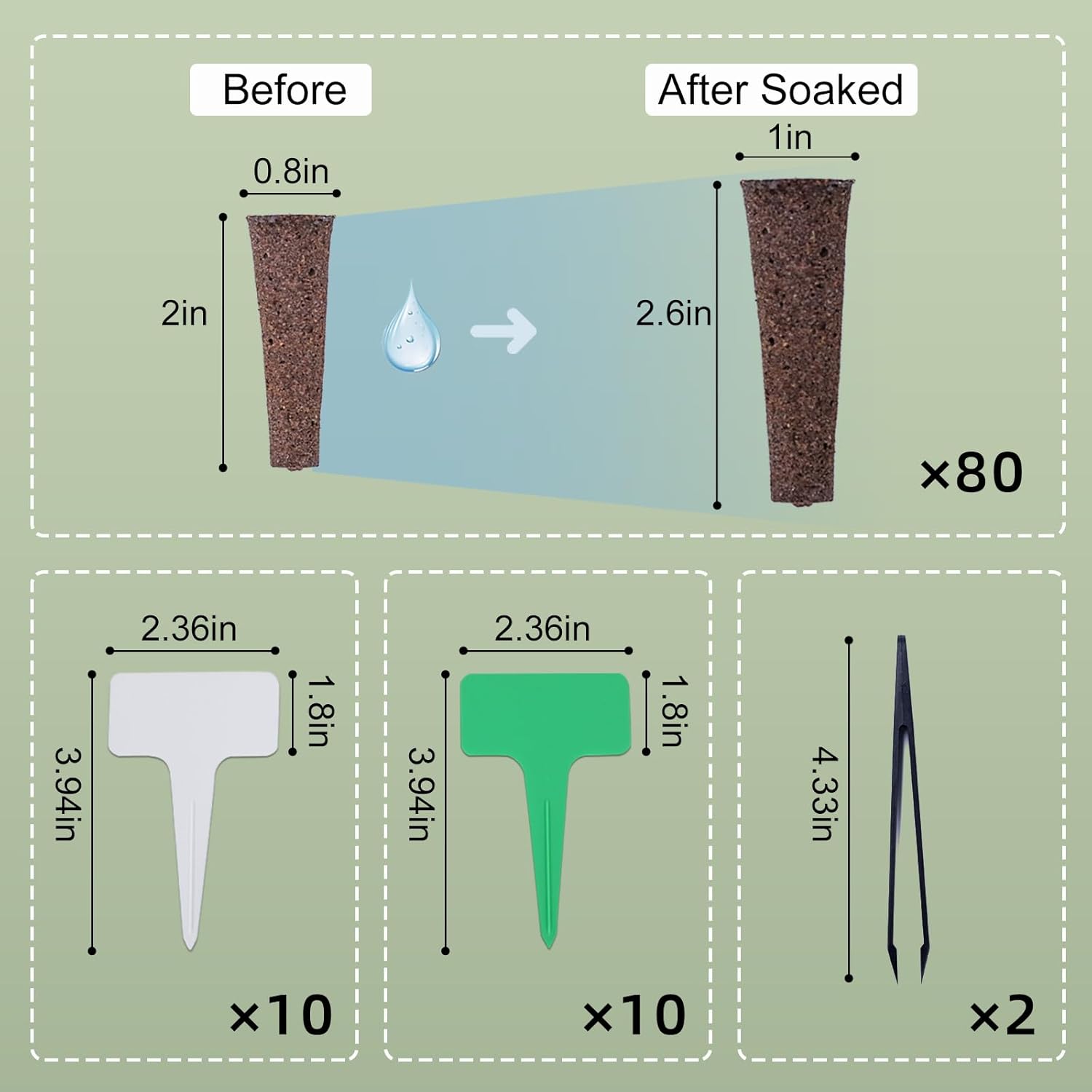 - 【What Will You Get】80 x replacement grow sponges,10 x green plastic plant labels,10 x white plastic plant labels,2 x tweezers.Enough quantity allow you to start many seeds at the same time,which greatly saves your time!All the hydroponic grow sponges are dry and easily stored
