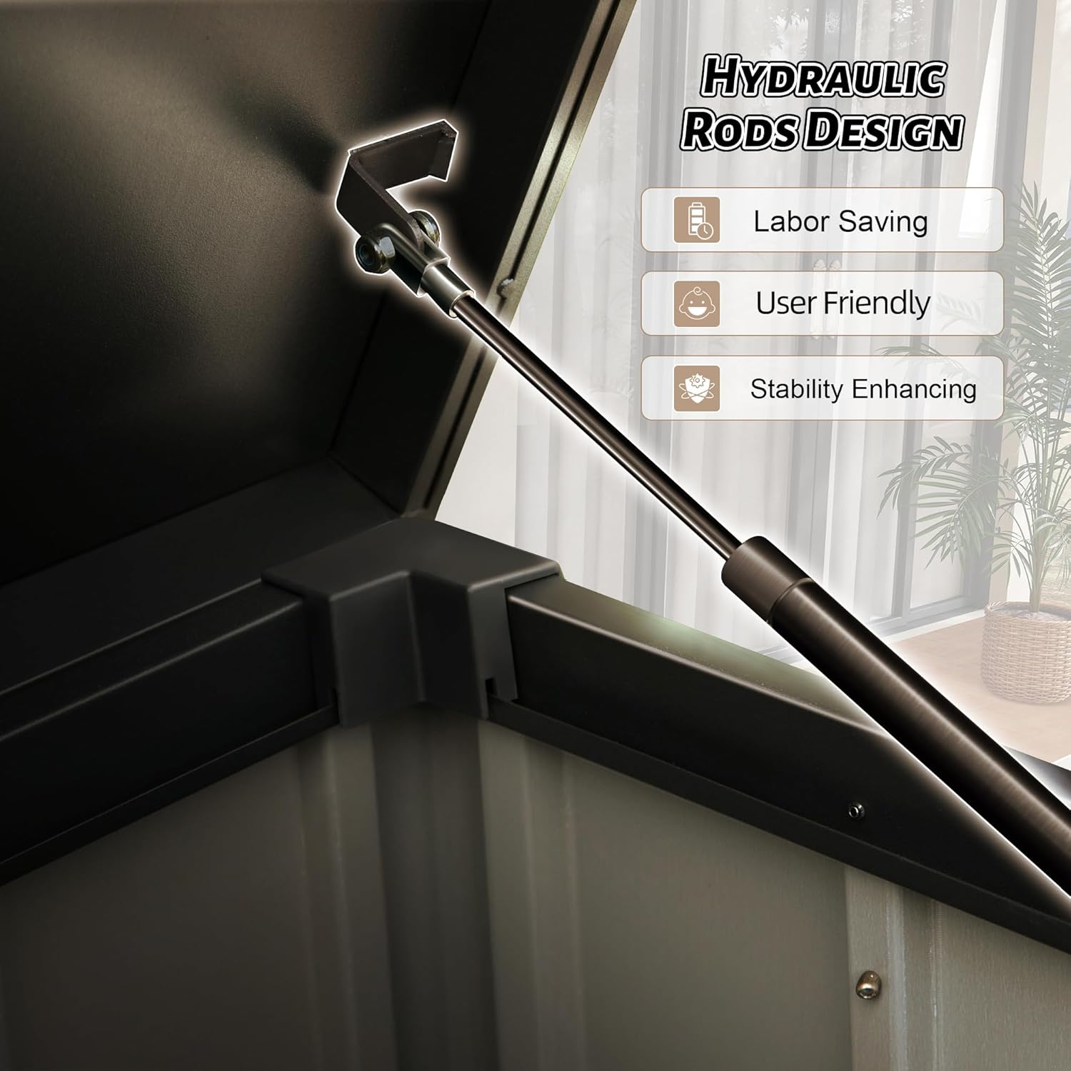 - SHPAI Upgraded Galvanized Steel Deck Box - this patio deck box is made of high quality metal which is more durable and strong than others’ resin/rattan/wood materials. SHPAI's exclusive corrosion and oxidation resistant tech make it more long-lasting and looks like new after long time using.