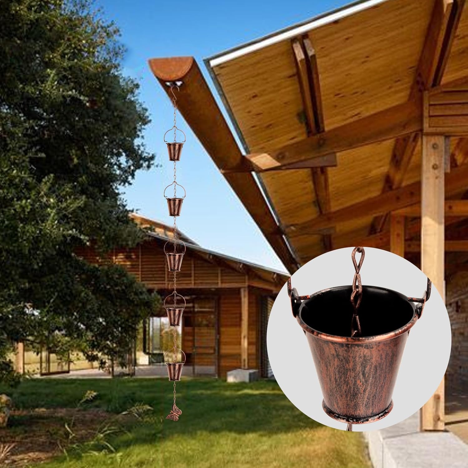 - DURABLE HANDMADE: The gutter rain chain is made of high quality iron with excellent craftsmanship, each cup is handmade by artisans and welded to a sturdy chain for durability, and the surface is also treated with rust-resistant plating, which won't be easily damaged or peeled off.