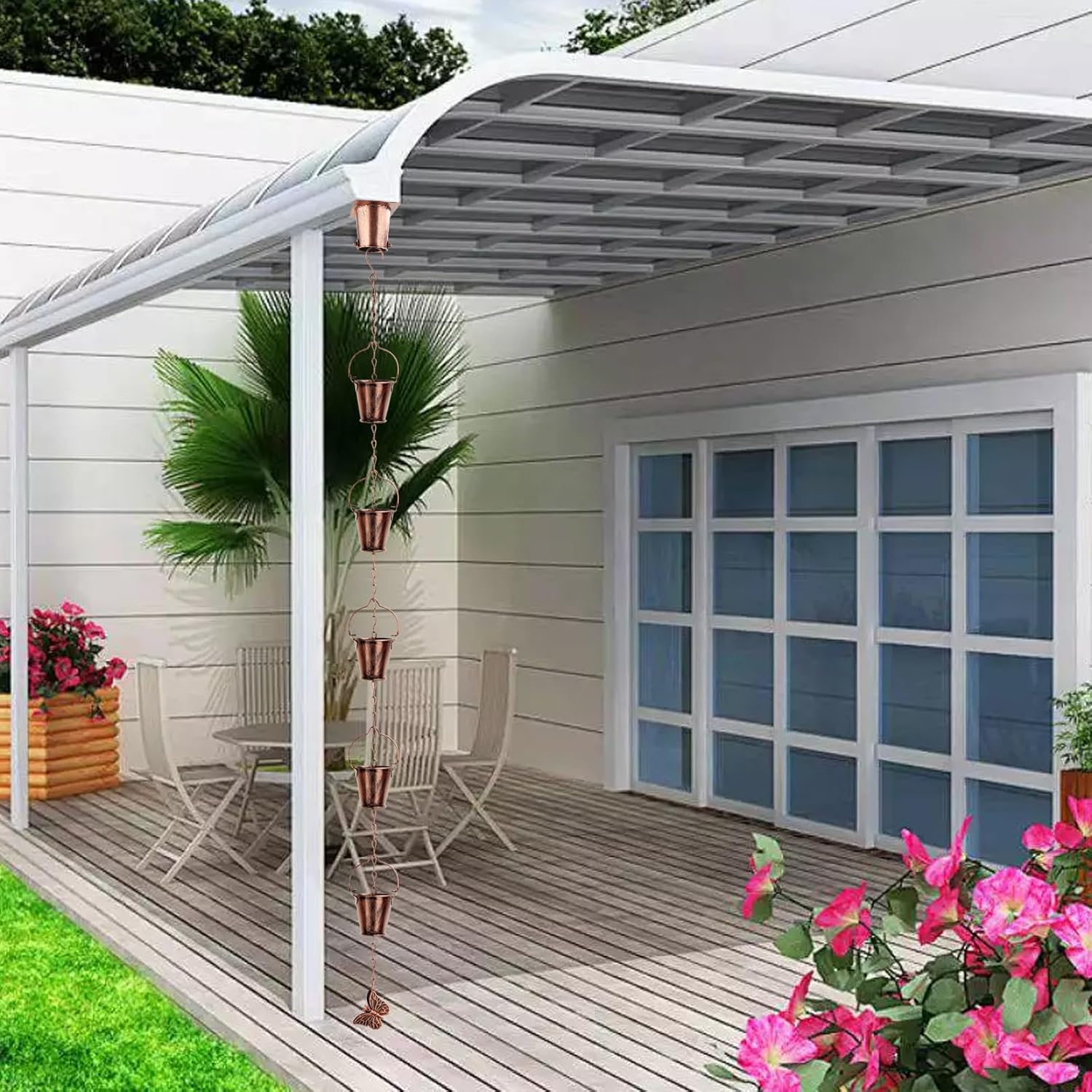 - UPGRADED SIZE&EASY TO HANG: The outdoor rain chain is 9 feet long, ensuring most home use, with a small cup design that prevents water from splashing. With an S-hook at the top, no tools are needed for installation, just hang it over the drain.