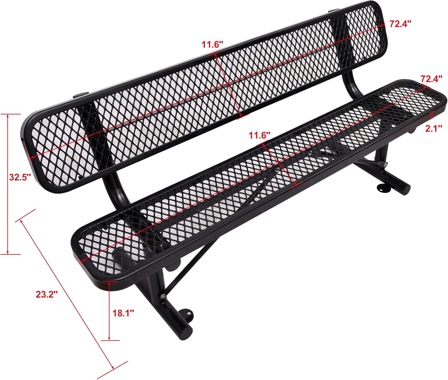 4/6/8 Feet Park Bench for Outside Heavy Duty Metal, Garden Benches Outdoor Bench with Backrest & Portable Frame, for Shopping Malls Stores Parks Patios Decks, Black