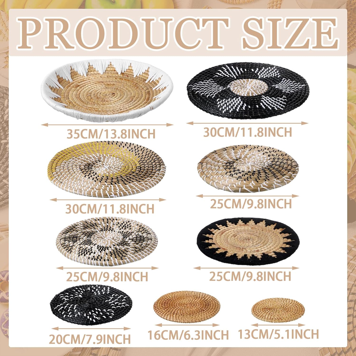 - Wide Applications: boho basket wall decor set as placemats, or as decorative baskets to store toys and accessories, the rustic basket wall art is suitable for many occasions, such as hotels, restaurants, living rooms, bedrooms, schools, stores, offices, dorms, shops,Christmas and more, they bring a comfortable, farmhouse feel to your space, bringing you an elegant and classic feeling