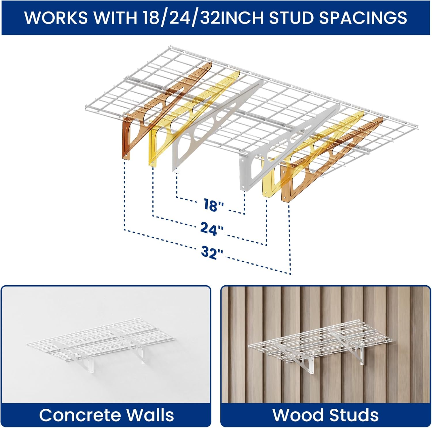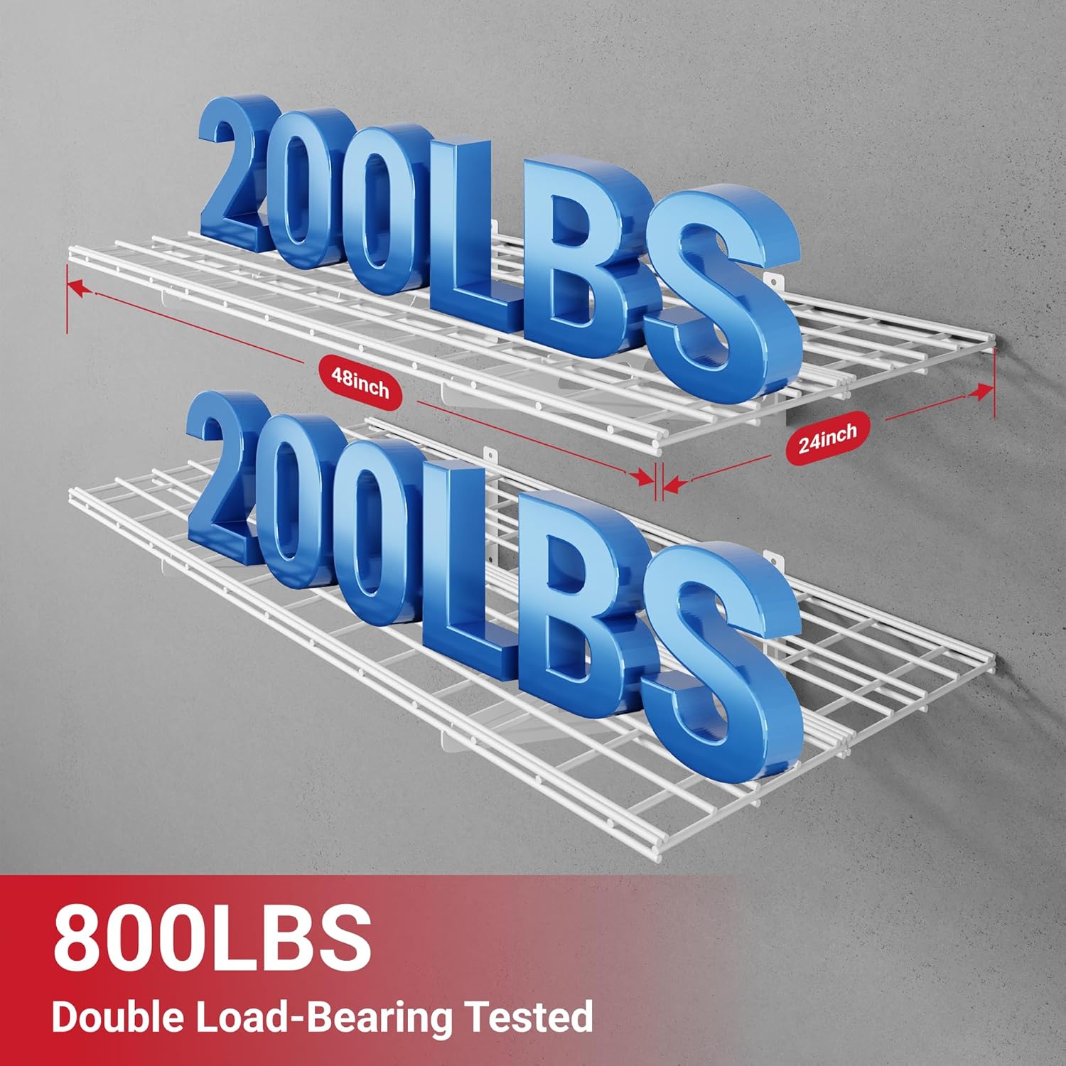 LEXIMOUNTS 2-Pack 2x4ft Garage Shelving with Hooks, 24-inch-by-48-inch Wall Shelf Garage Storage Racks Floating Shelves, White