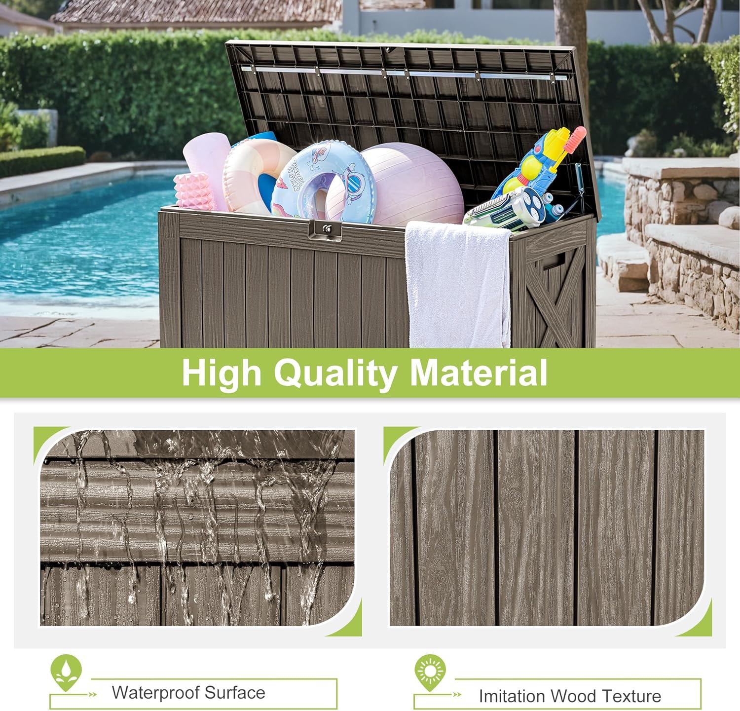 Greesum 120 Gallon Deck Box, Resin Outdoor Storage Container for Patio Furniture, Garden Tools, Pool Accessories, Weatherproof, Lockable, Coffee