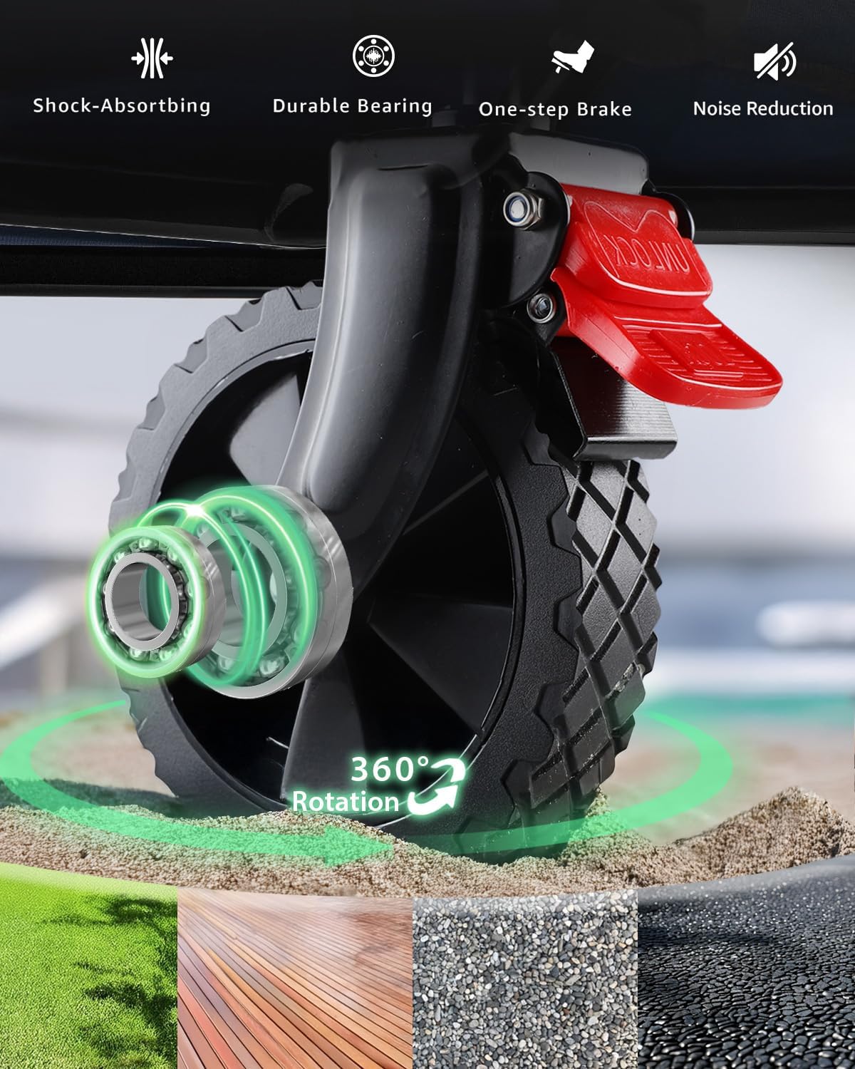 - ๐๐ฅ๐ฅ-๐ญ๐๐ซ๐ซ๐๐ข๐ง ๐๐ก๐๐๐ฅ๐ฌ ๐ฐ๐ข๐ญ๐ก ๐๐๐๐ซ๐ข๐ง๐ ๐ฌ: Equipped with sturdy wheels that have built-in bearings, this foldable wagon with wheels for groceries ensures smooth and reliable movement across various surfaces. The bearings also contribute to a quieter operation. For added safety and stability, the beach wagon is equipped with a reliable brake system that keeps it stationary when needed, preventing unwanted rolling