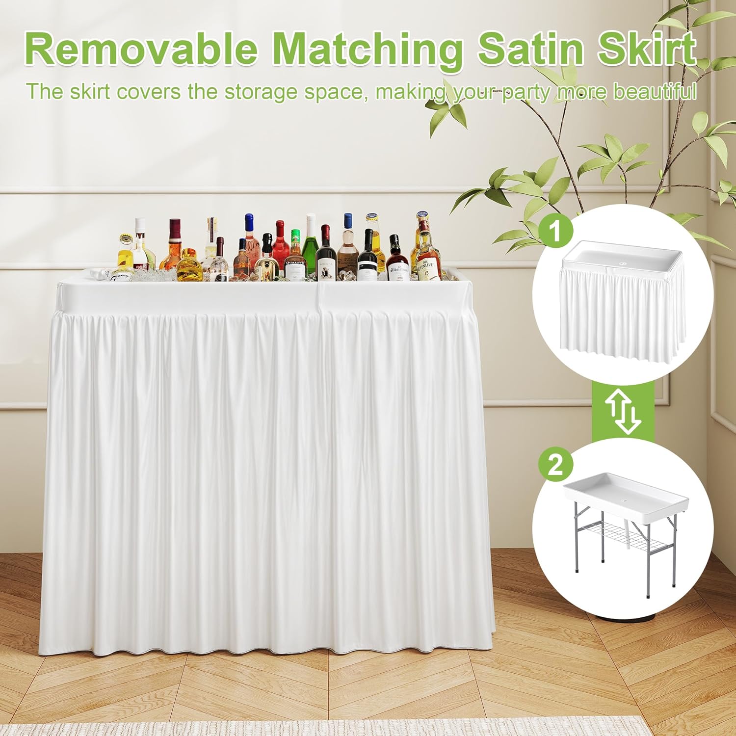 4 Foot Ice Cooler Table with Matching Skirt & Drain Hose, with Iron Stand, Portable Patio Outdoor Chilling Table Portable Bar for Events for Party, Picnic, BBQ, Camping (White)