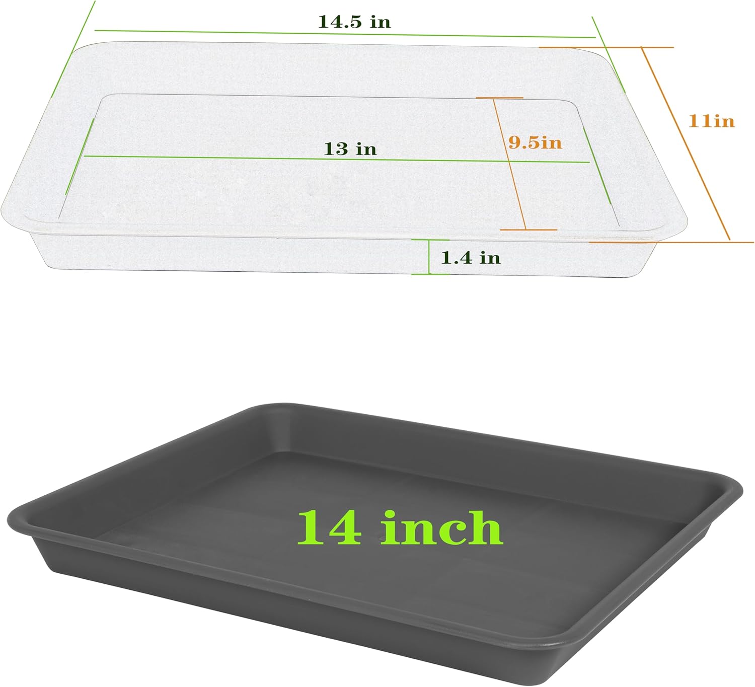 - PLANT TRAY VALUE - Plant drainage tray, 2 packs plant tray saucers rectangular, Plant Saucers for Indoors, inner diameter is 13 X 9.5 inch width and outer diameter is 14.5 x 11 inch width, 1.4'' Height, suitable for flower pot with bottom diameter less than 10 11 12 13 inches. Plant drainage trays for planter.