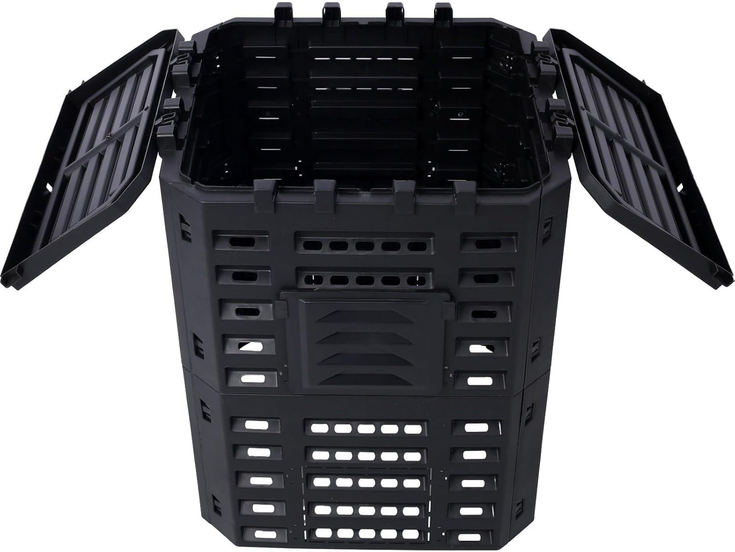 - Premium Recycled Plastic: Made from durable black PP plastic, this compost bin retains heat and regulates moisture, leading to faster decomposition and higher quality compost